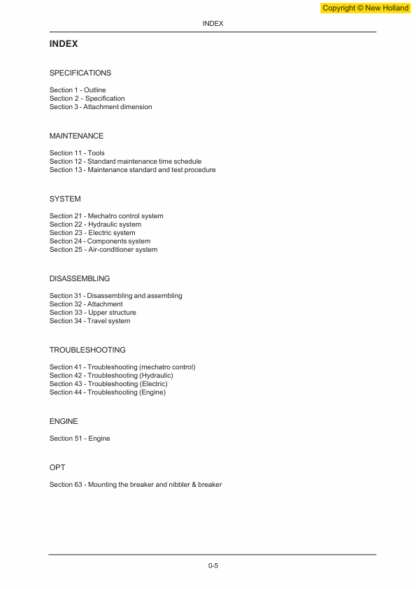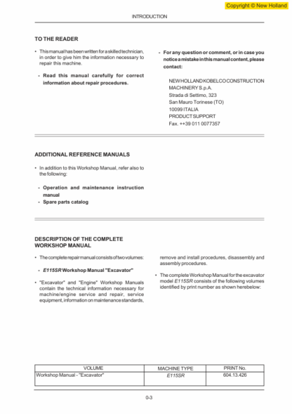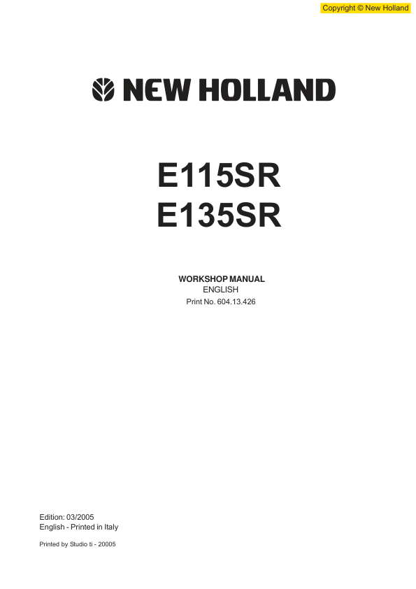 New Holland E115SR E135SR Hydraulic Excavator Workshop Manual