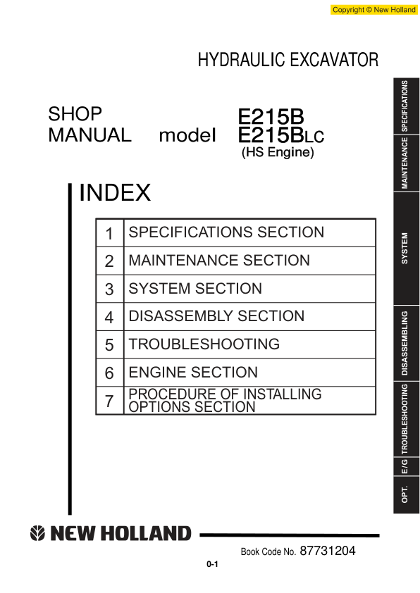 New Holland E215B Hydraulic Excavator Service Manual Tier 3