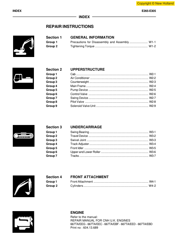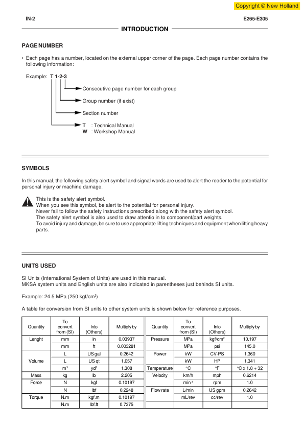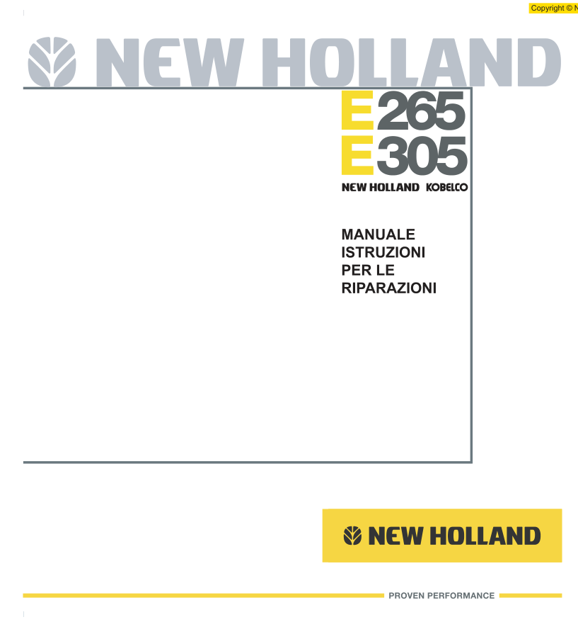 New Holland E265B E265BLC Excavator Workshop Manual Tier III