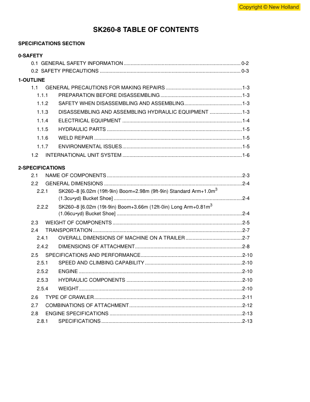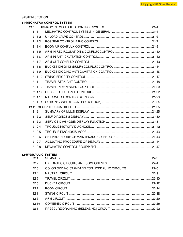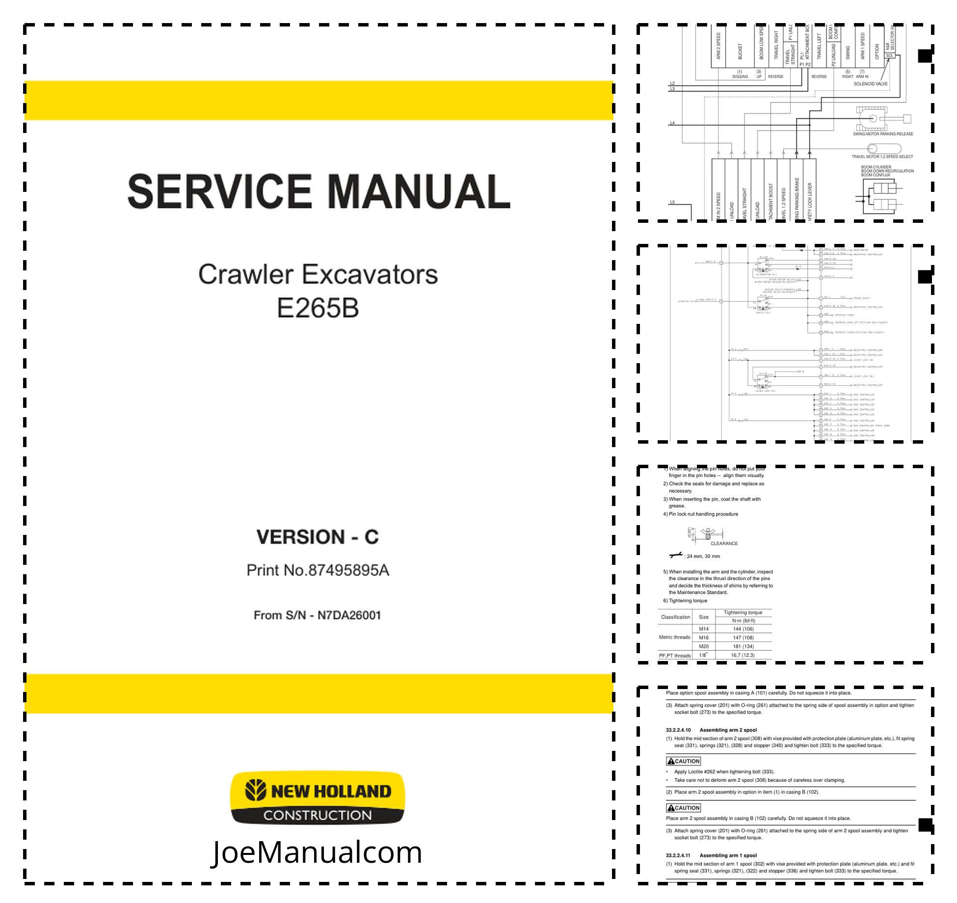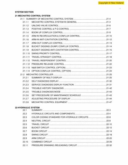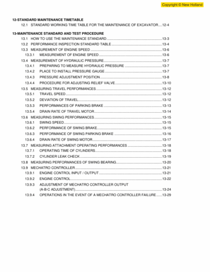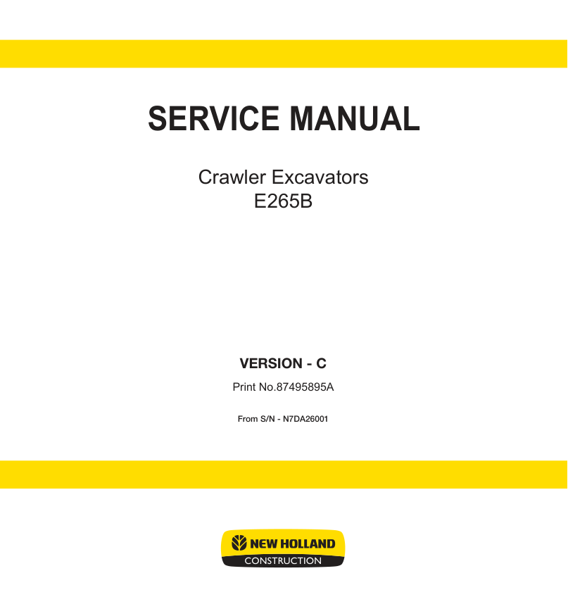 New Holland E265B Excavator Workshop Manual