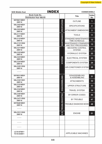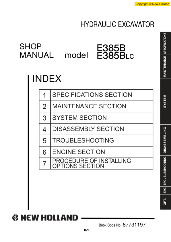 New Holland E385B Hydraulic Excavator Service Manual Rev 08-2007