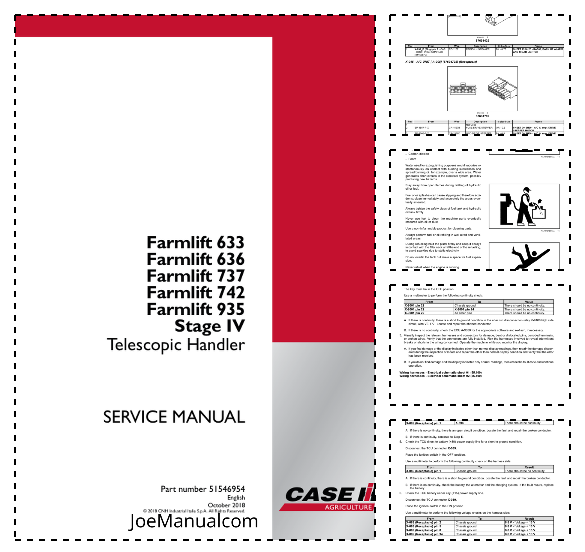 New Holland Farmlift 633 636 737 742 935 Stage IV Telescopic Handler Service Manual