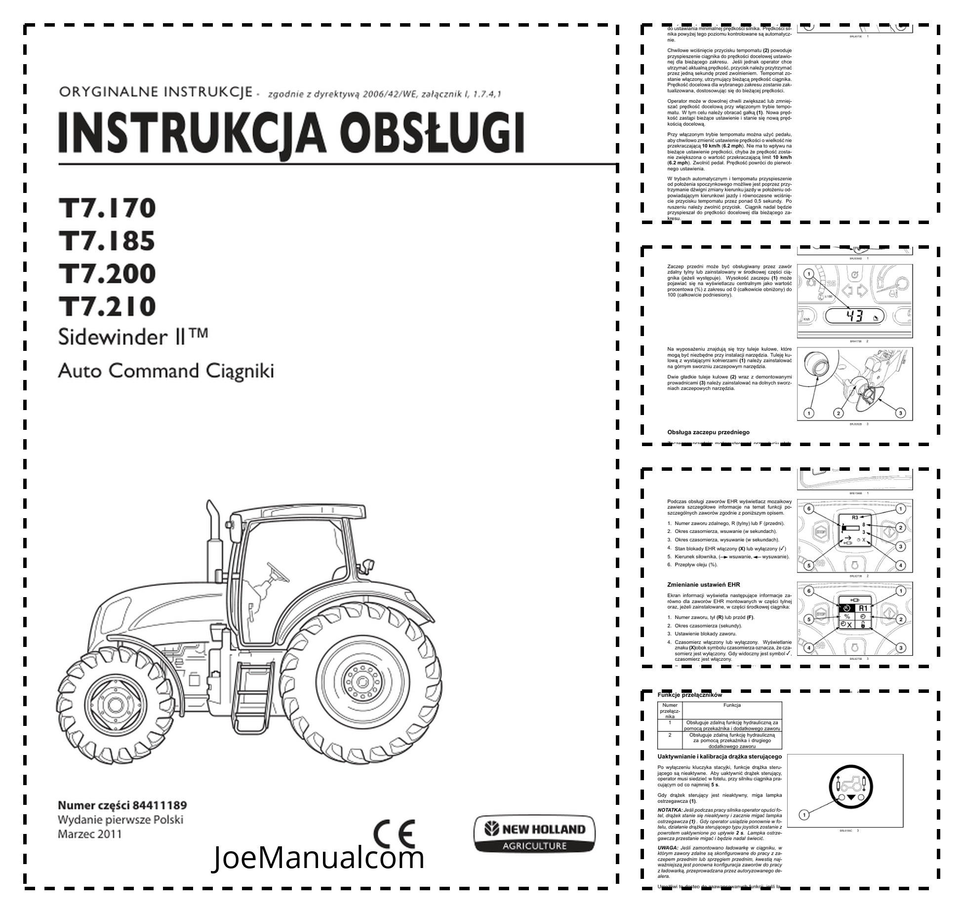 New Holland T7 170 185 200 210 Auto Command Tractor Operators Manual PL
