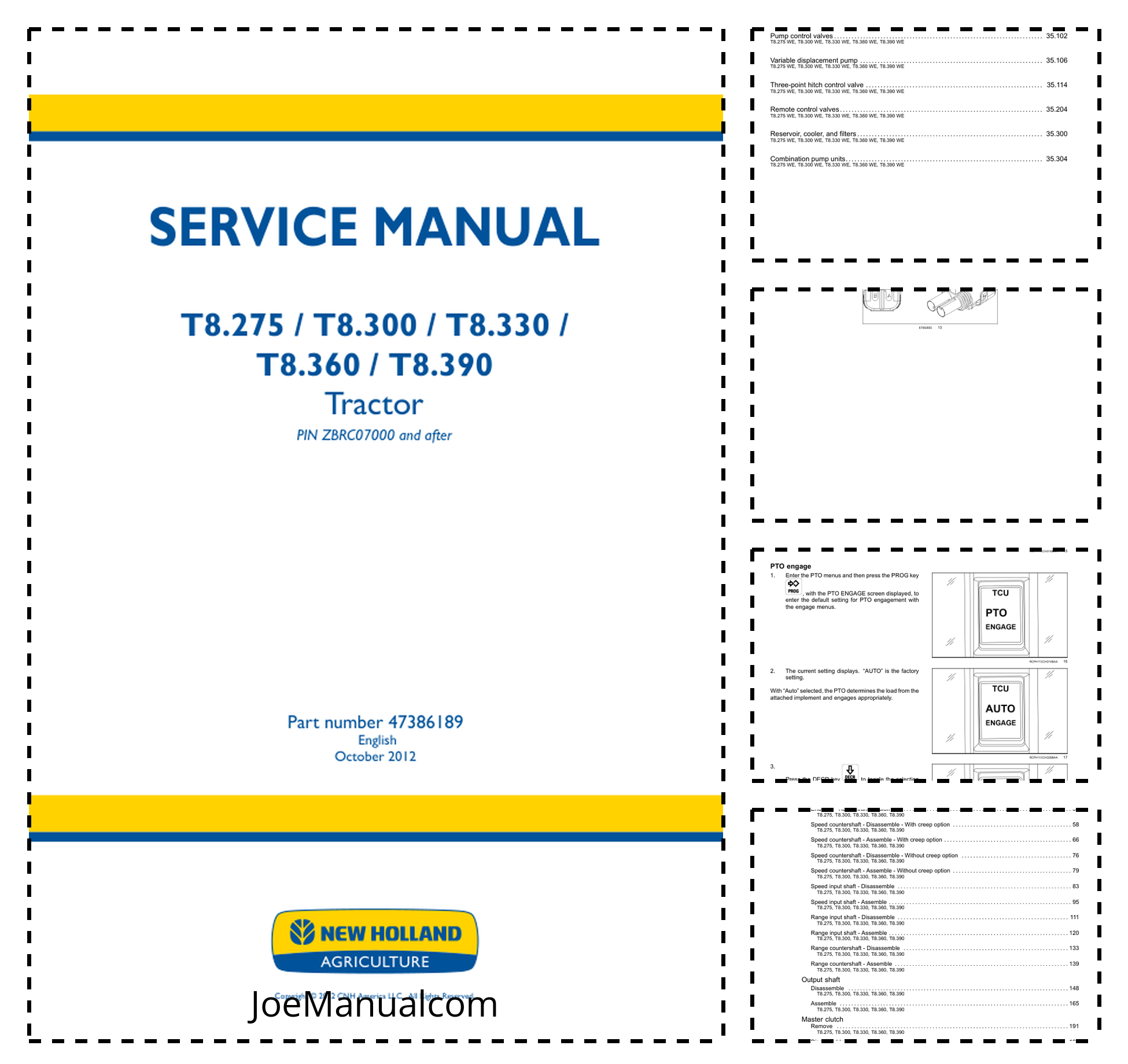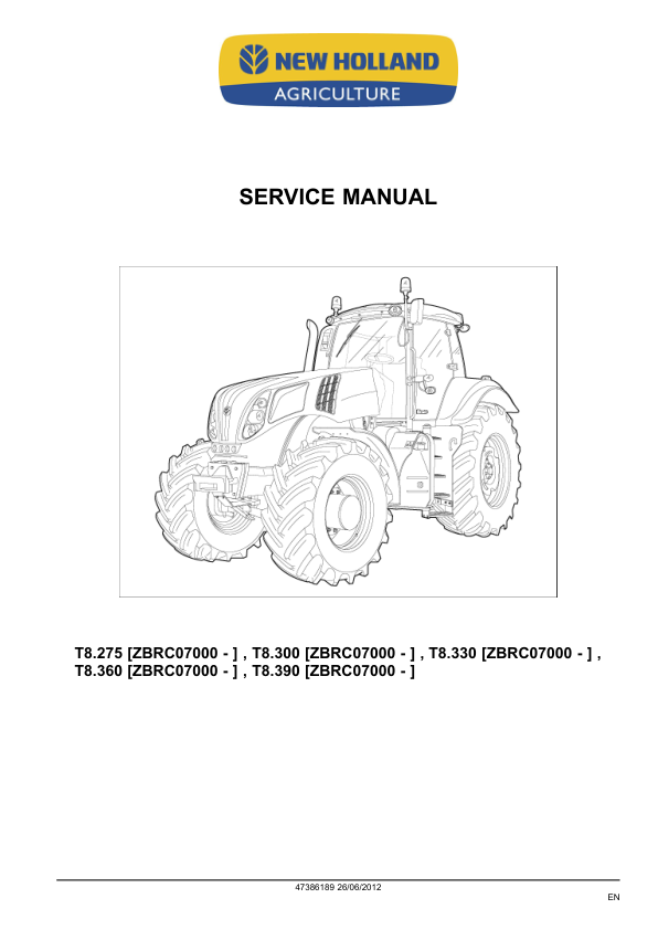 New Holland T8.275 T8.300 T8.330 T8.360 T8.390 Tractor Service Manual