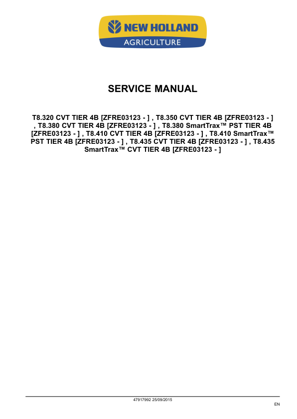 New Holland T8 Series SmartTrax Tractor Service Manual