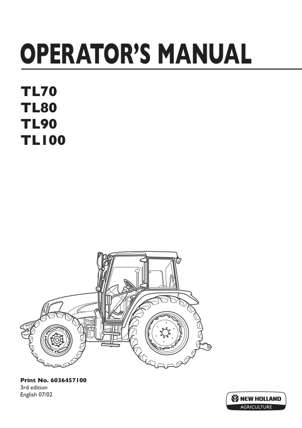 New Holland TL70 TL80 TL90 TL100 Tractor Operators Manual