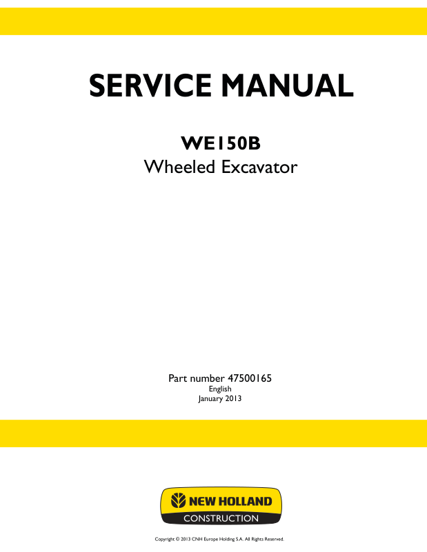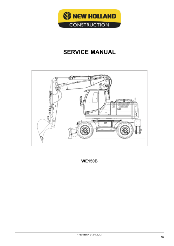 New Holland WE150B Wheeled Excavator Service Manual Rev 01-2013