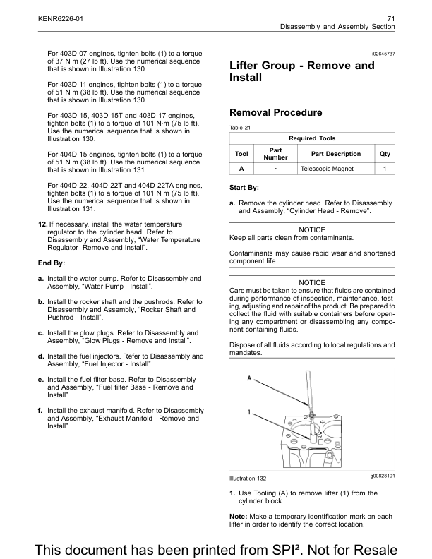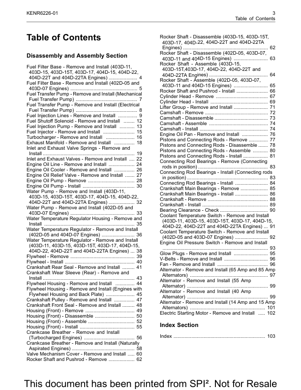 Perkins 402D 403D 404D Industrial Engines Disassembly and Assembly Manual 9806/4500