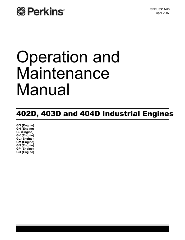 Perkins 402D 403D 404D Industrial Engines Operation and Maintenance Manual 9806/3090