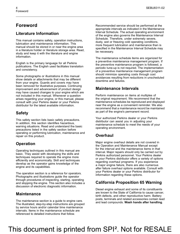 Perkins 402D 403D 404D Industrial Engines Operation and Maintenance Manual 9806/4450