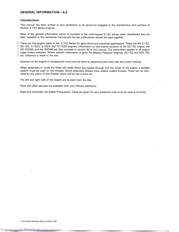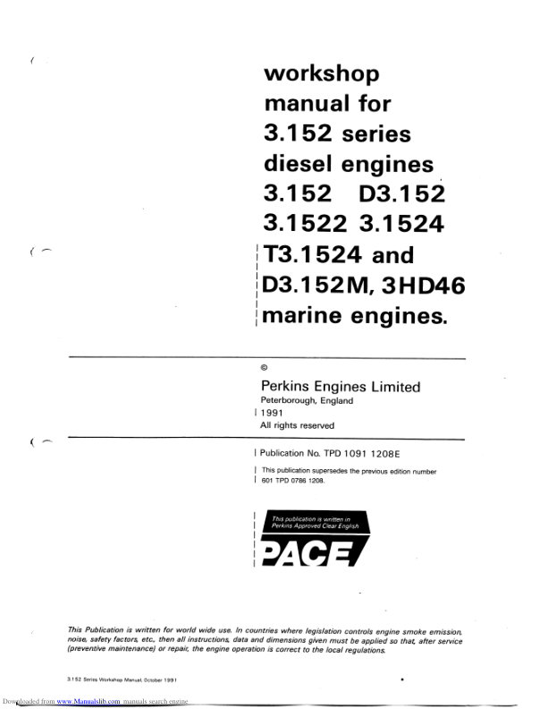 Perkins D3152 Engines Workshop Manual provides comprehensive guidance for the service, repair, and maintenance of Perkins D3152 engines. This manual offers detailed instructions, diagrams, and specifications necessary for technicians and mechanics to effectively diagnose and resolve engine issues. It’s an essential resource for ensuring optimal performance and longevity of your Perkins engine. Perkins D3152 Engines Workshop Manual is a detailed technical guide designed for professionals and experienced mechanics working with Perkins D3152 series engines. It contains in-depth information on engine components, troubleshooting procedures, repair techniques, and complete assembly/disassembly instructions. This manual is a vital tool for ensuring accurate and efficient engine servicing.