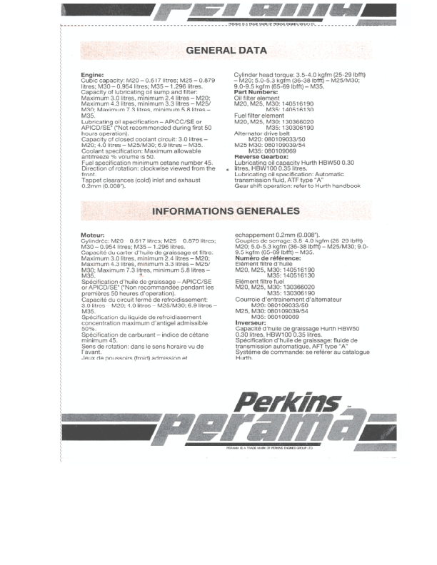 Perkins M20 M25 M30 M35 Marine Engines Workshop Manual
