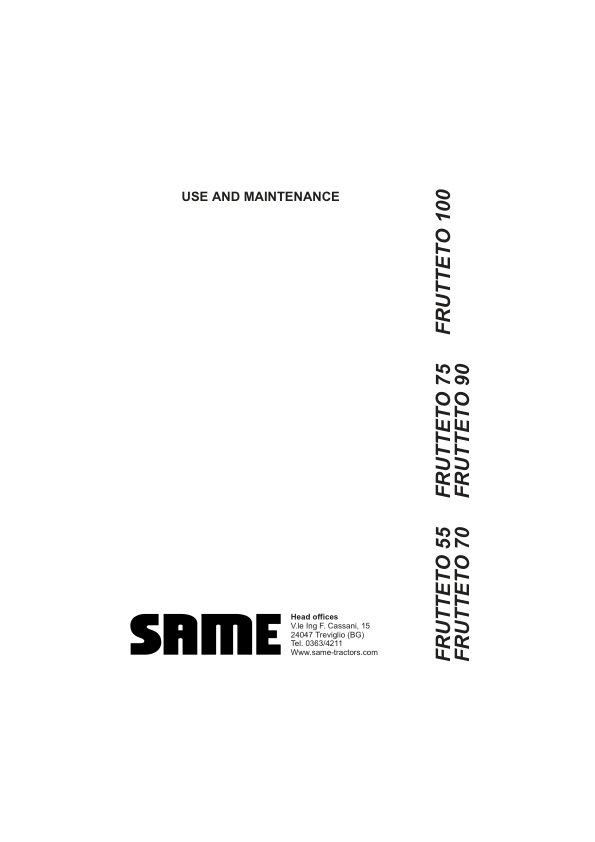 Same Frutteto 55 70 75 90 100 Tractor Operation and Maintenance Manual