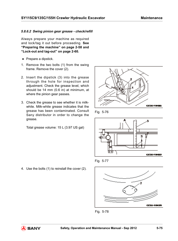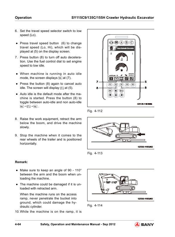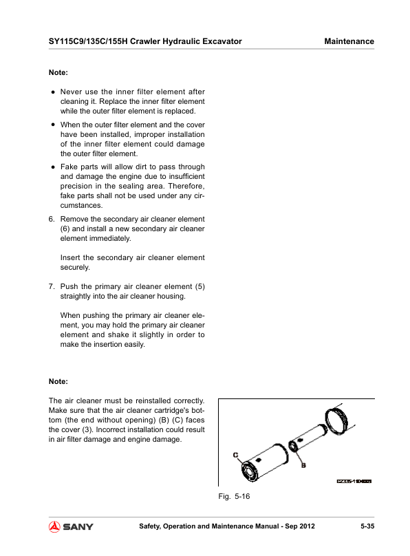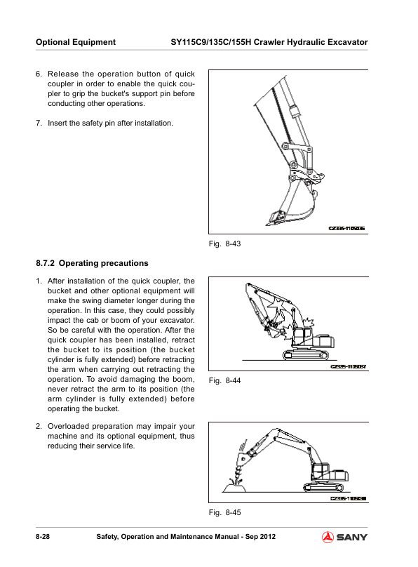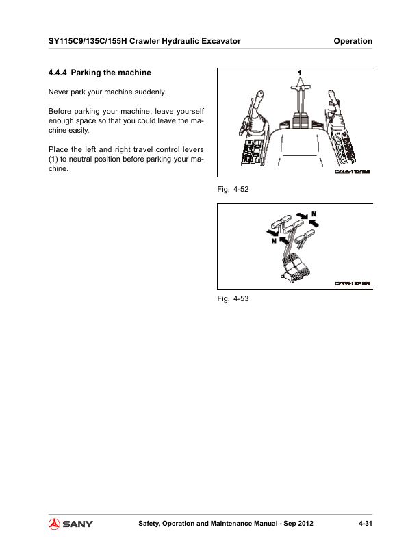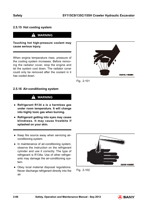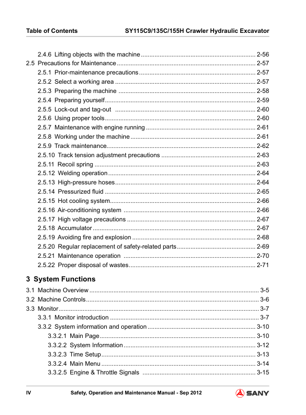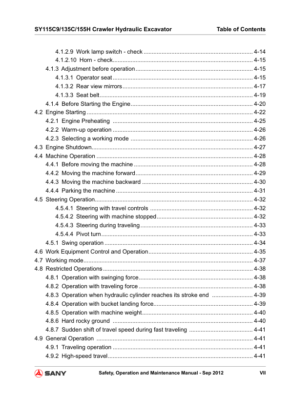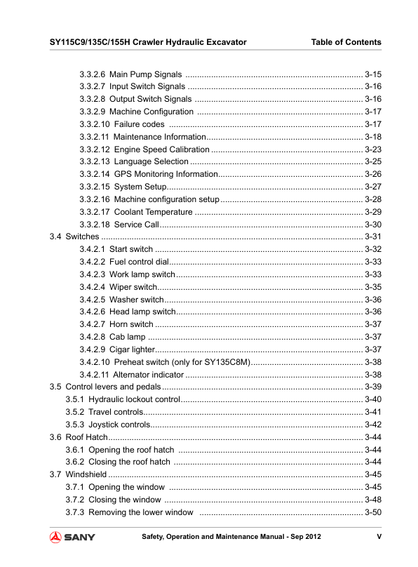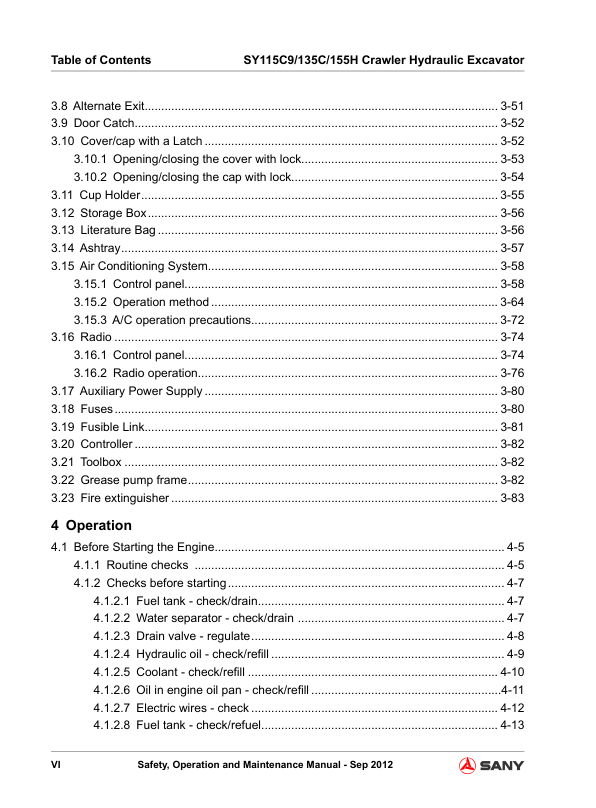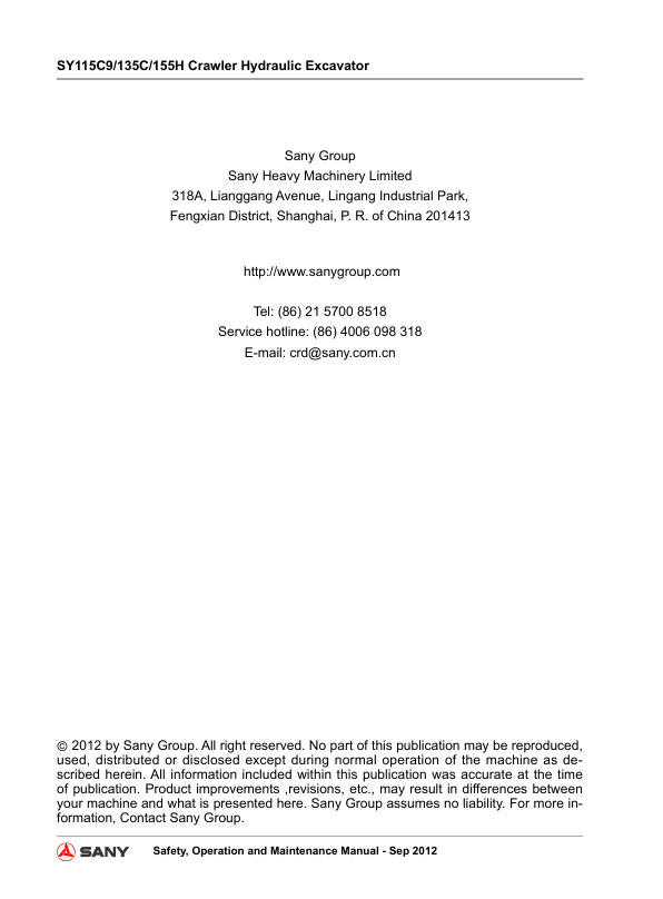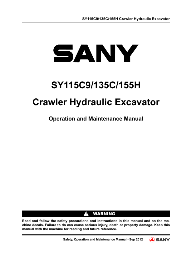 SANY SY115C9 135C 155H Excavator Operation and Maintenance Manual