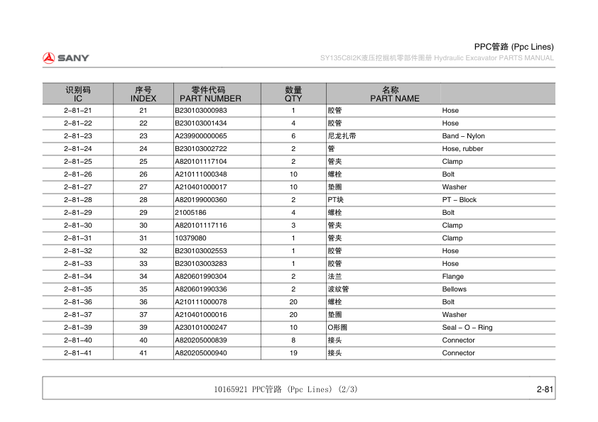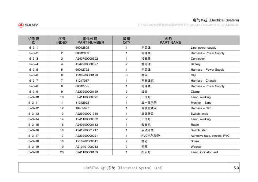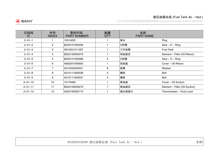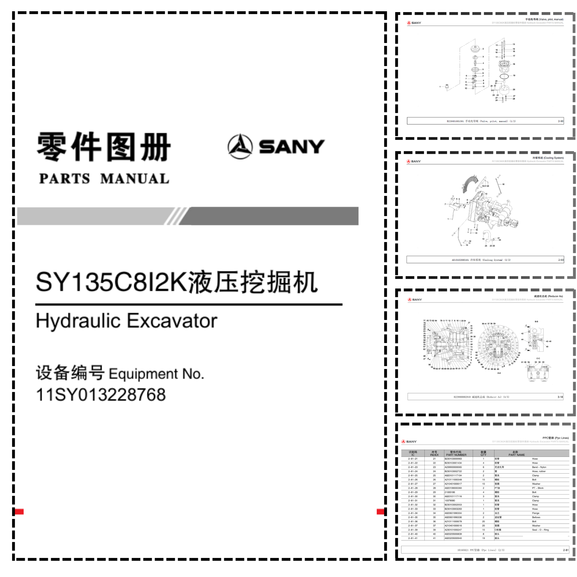 SANY SY135C8I2K Excavator Parts Catalog