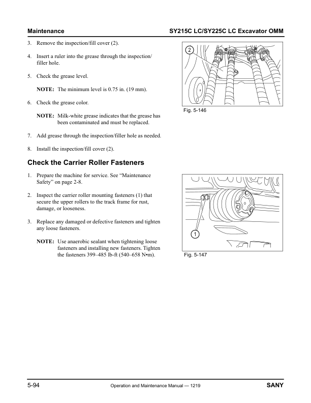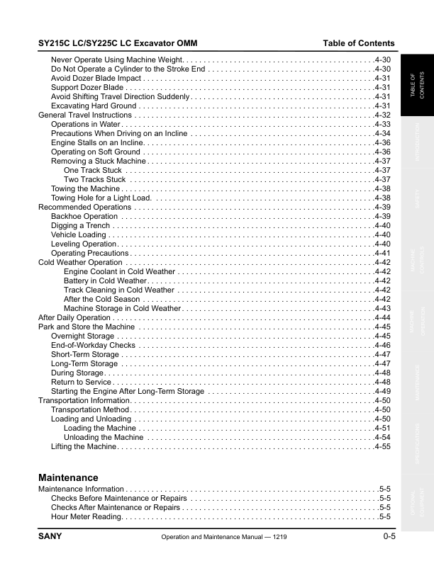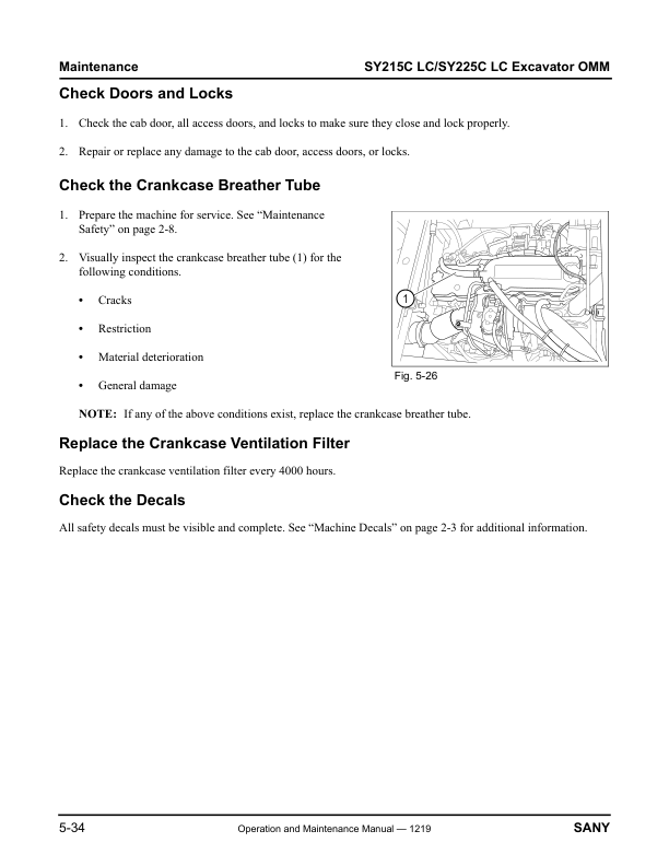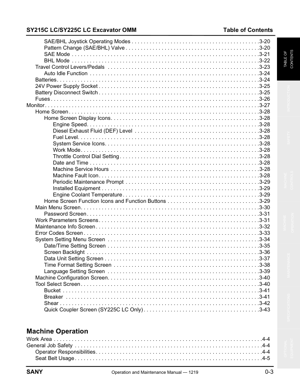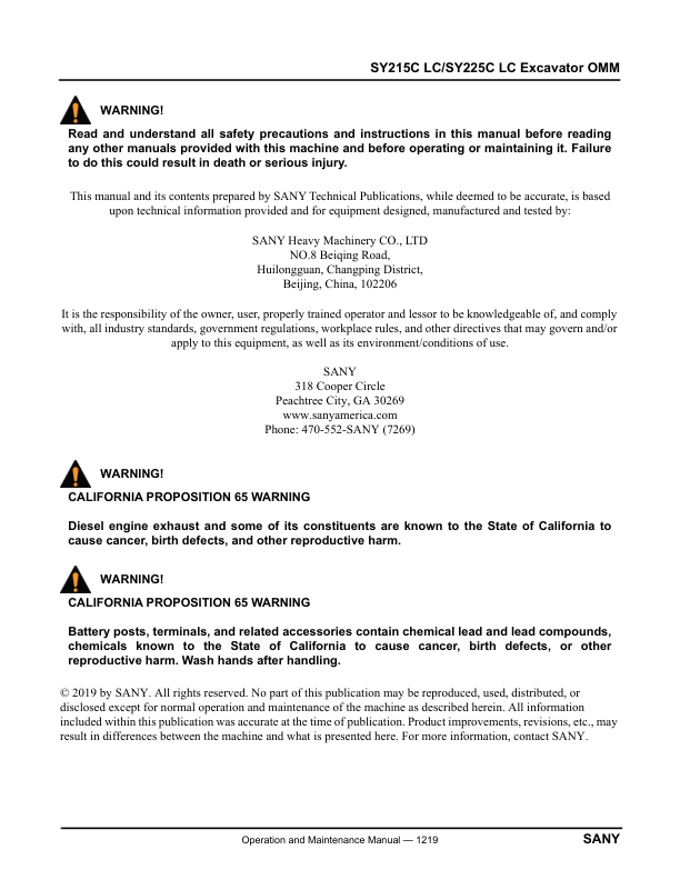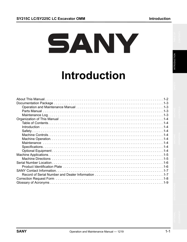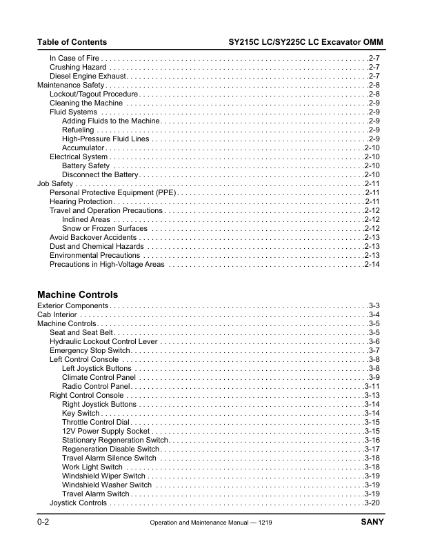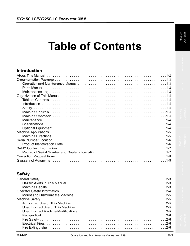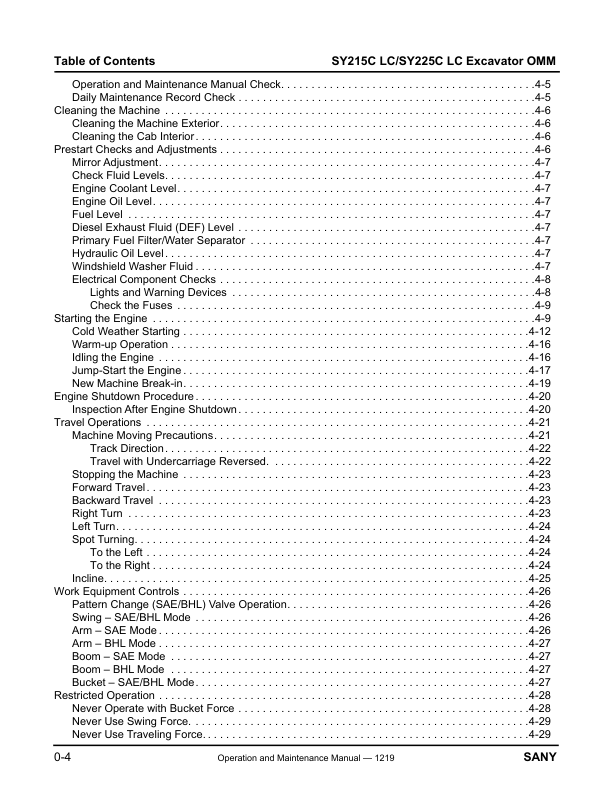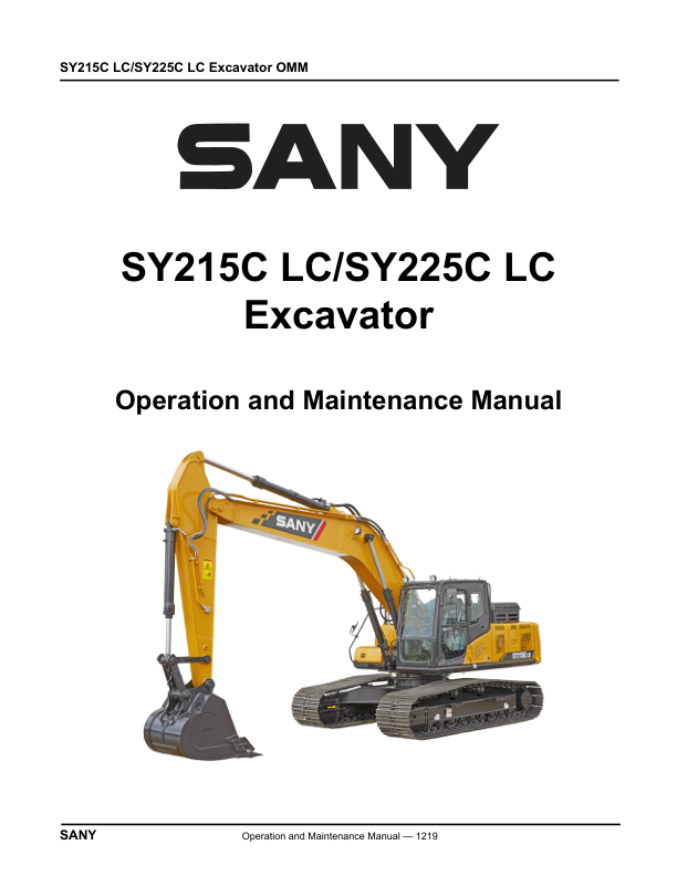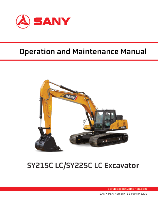 SANY SY215C LC SY225C LC Excavator Operation and Maintenance Manual