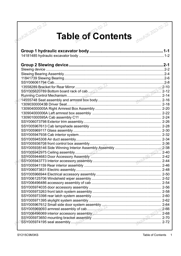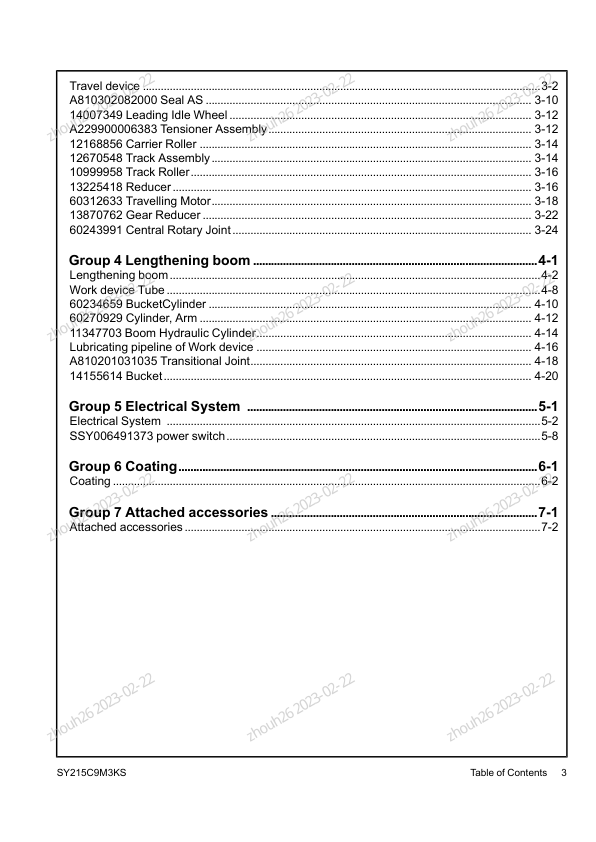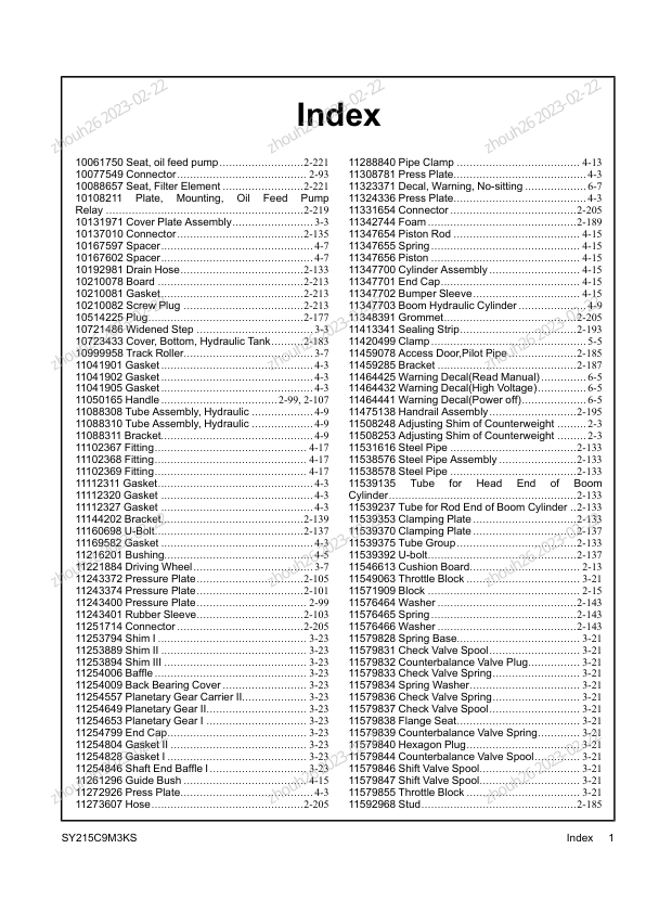 SANY SY215C9M3KS Excavator Parts Catalog