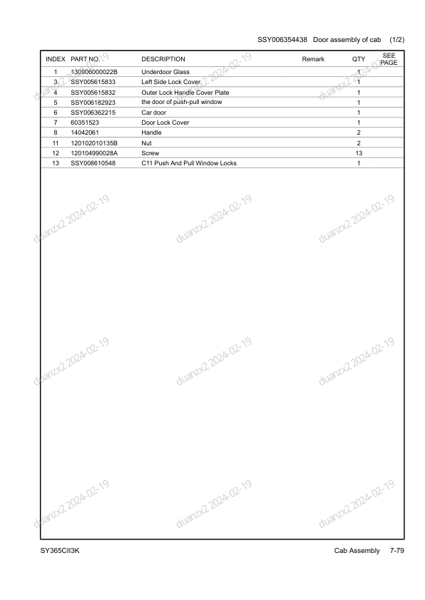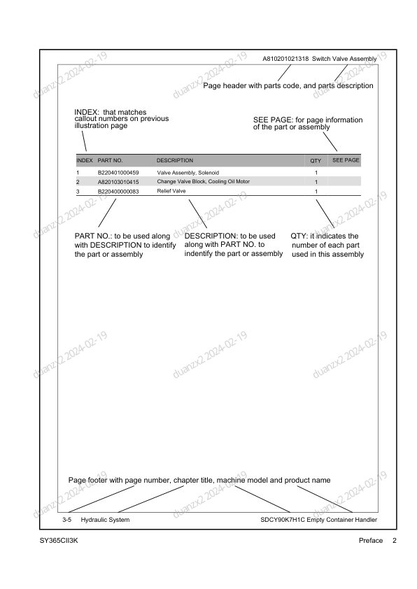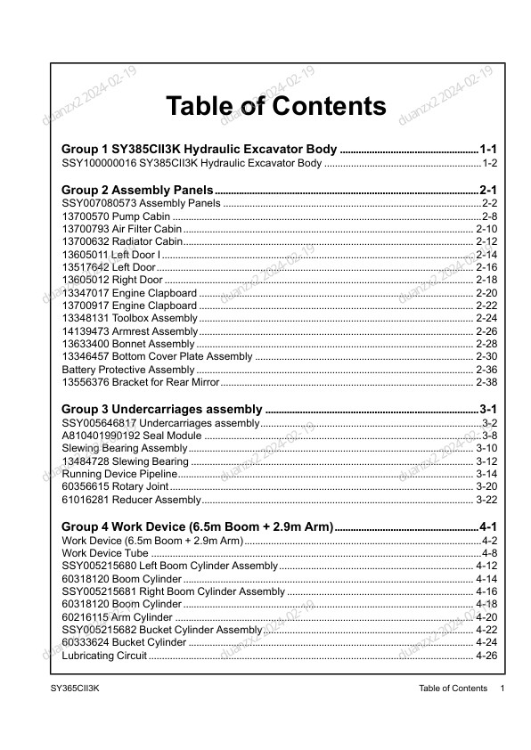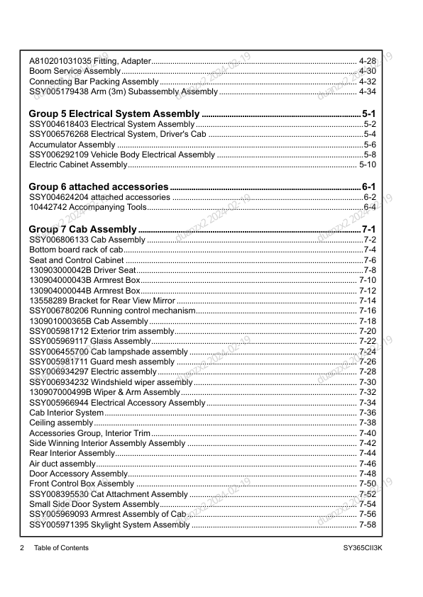 SANY SY365CII3K Excavator Parst Catalog SY036CE0025K8