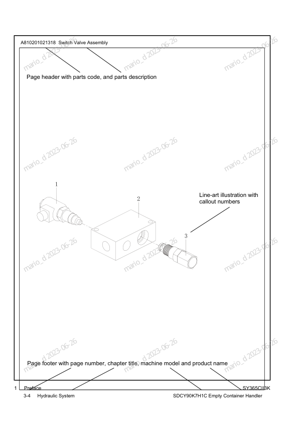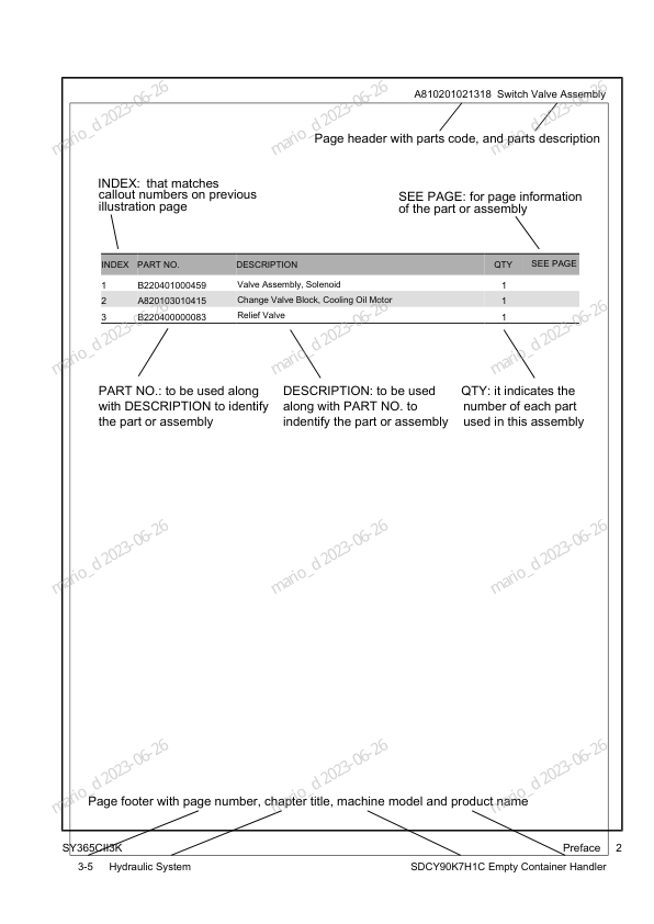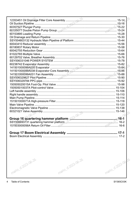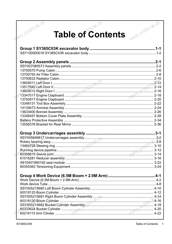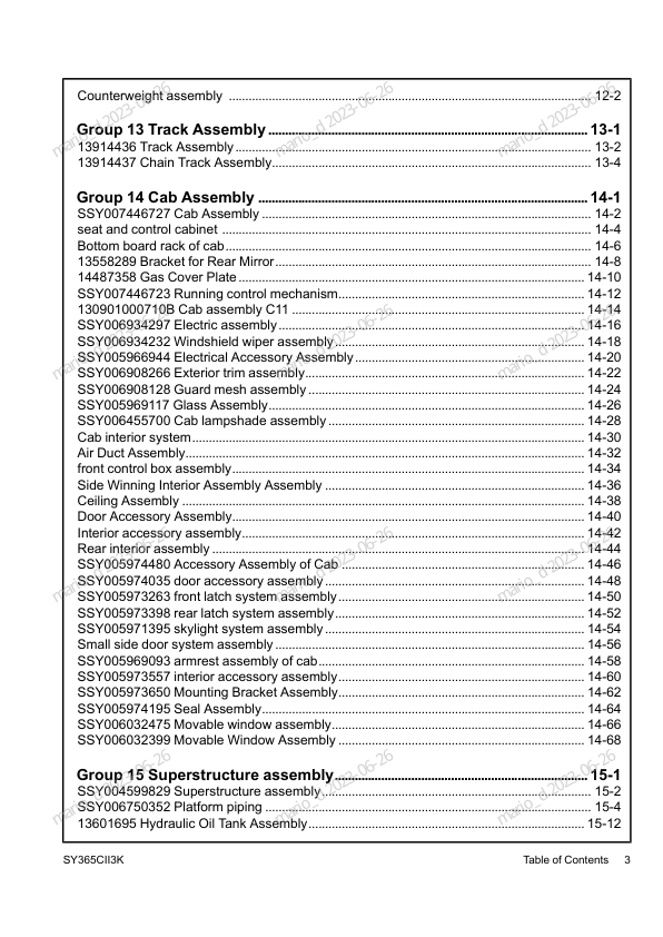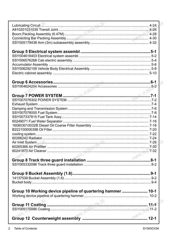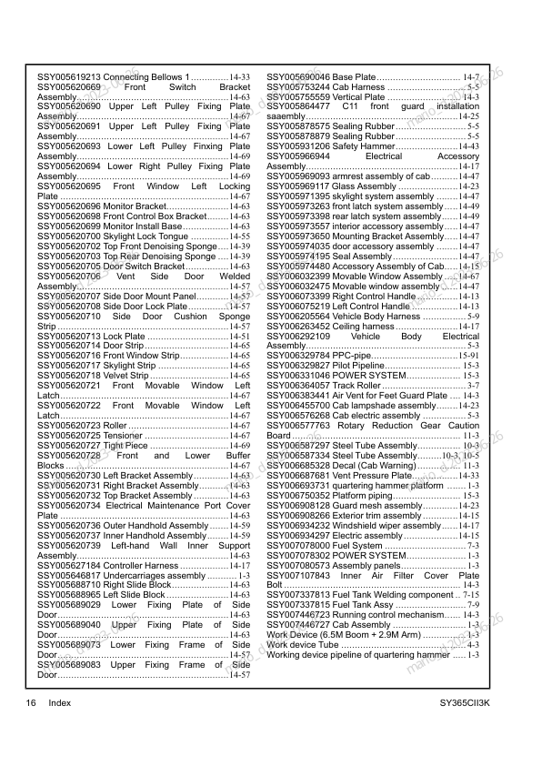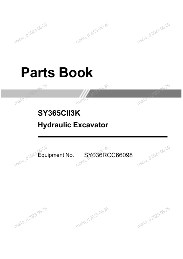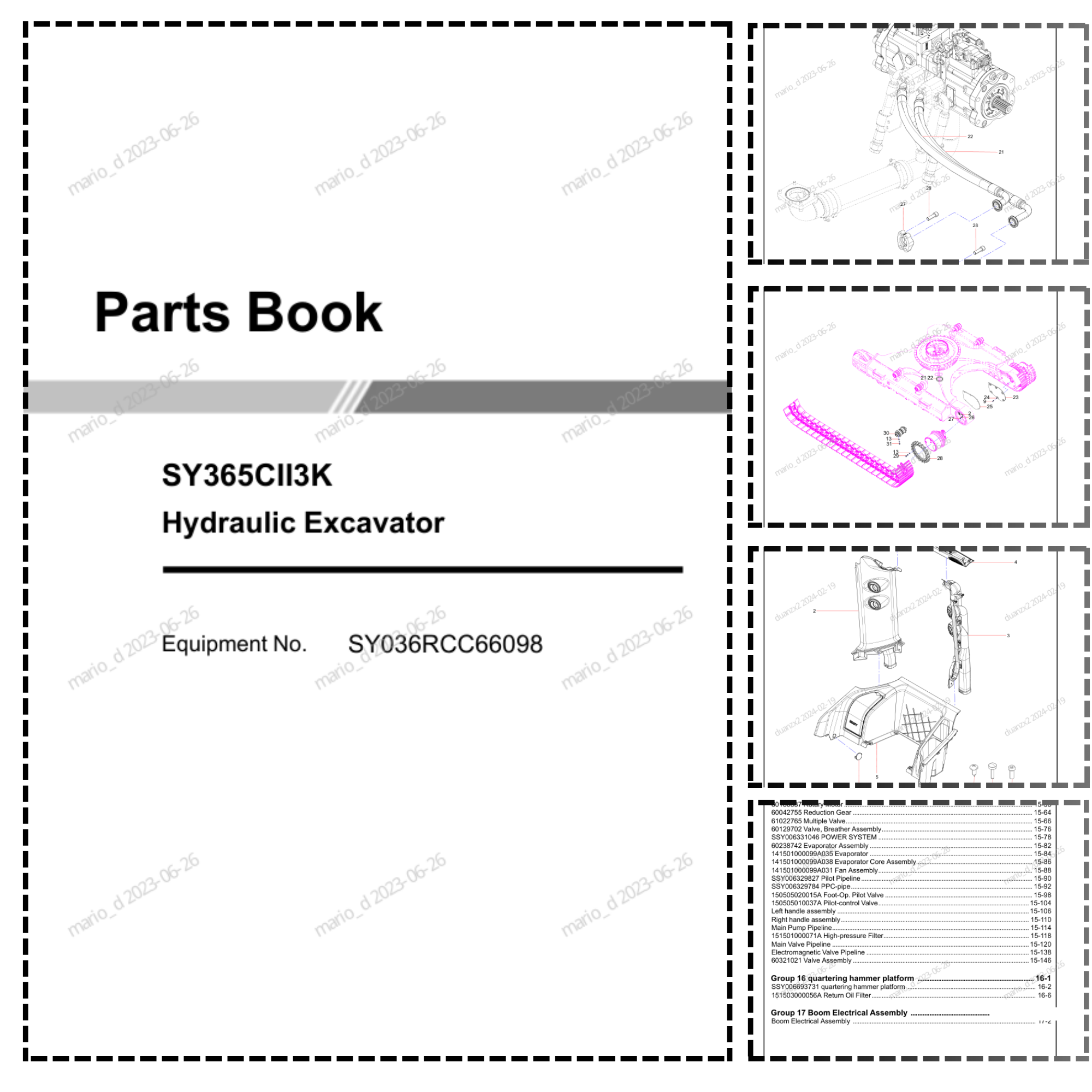 SANY SY365CII3K Hydraulic Excavator Parts Catalog SE036RCC66098