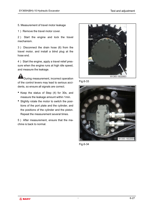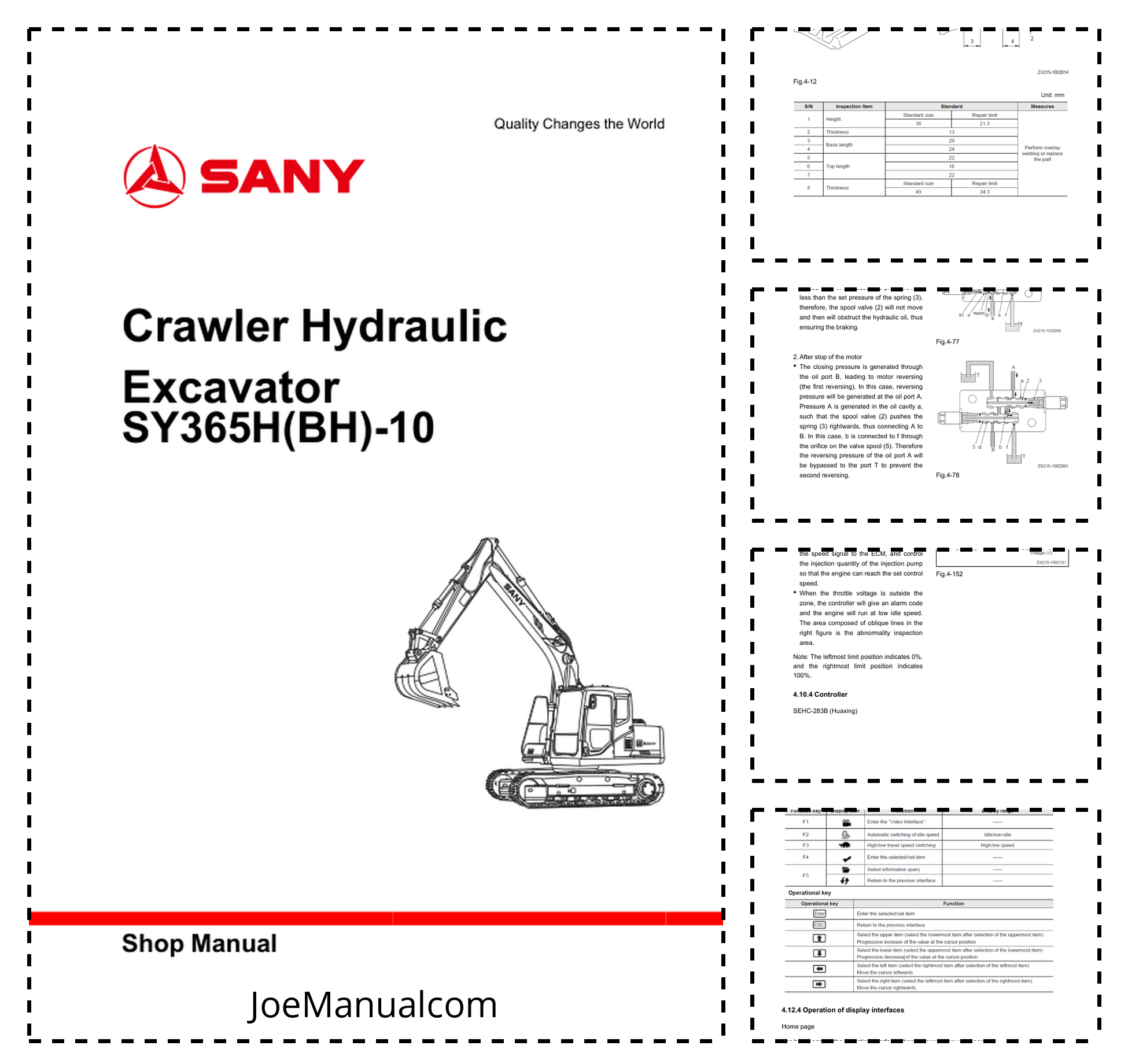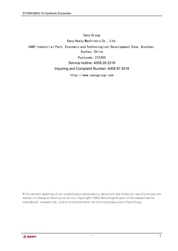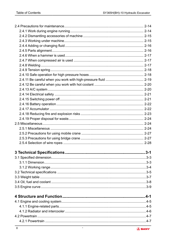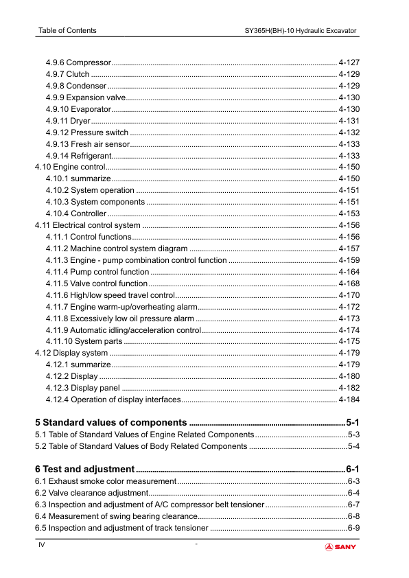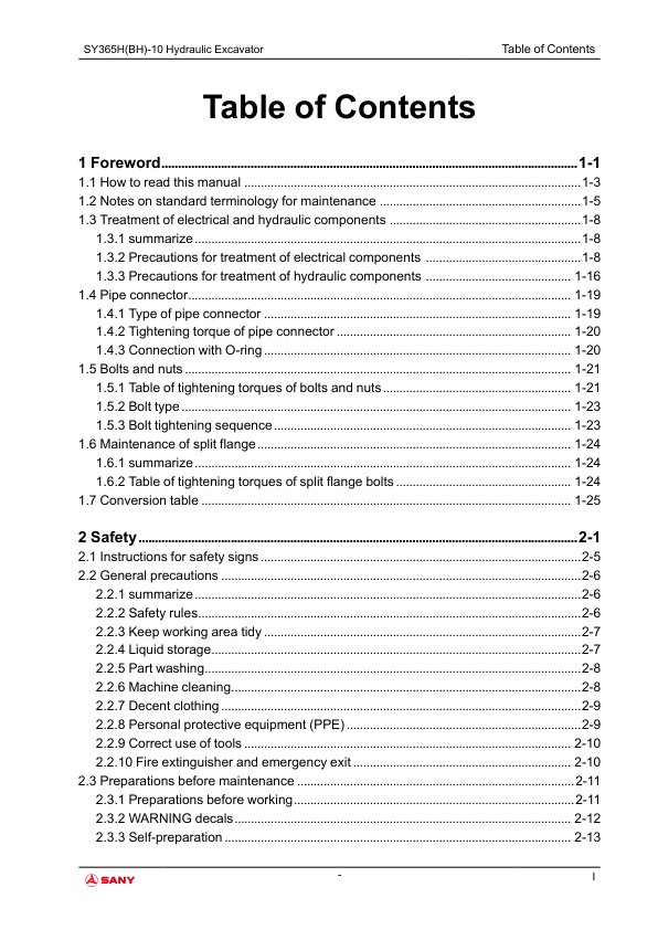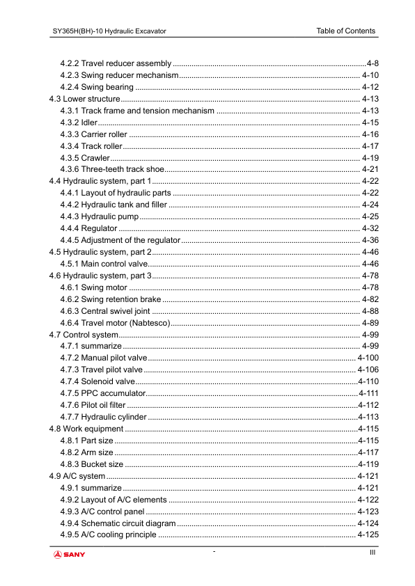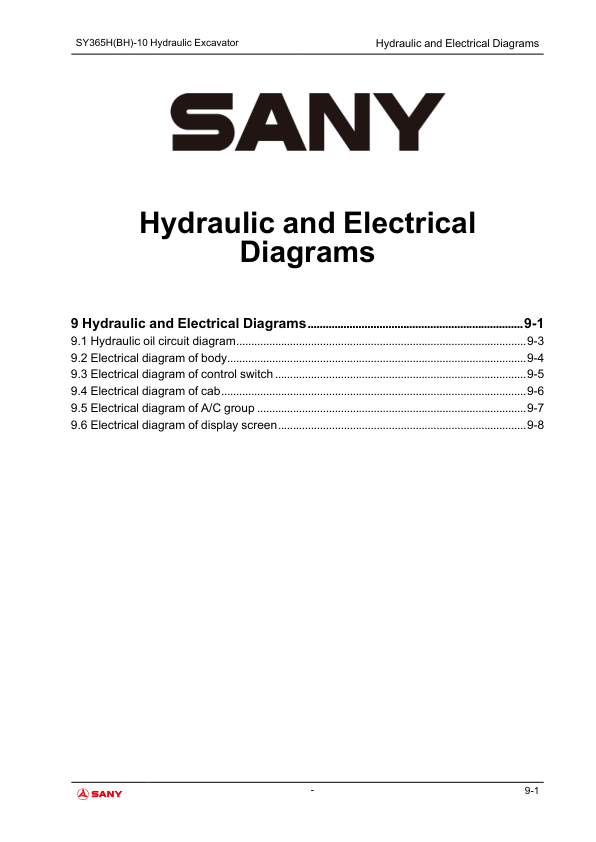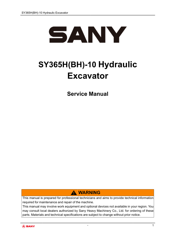 SANY SY365H BH-10 Hydraulic Excavator Service Manual