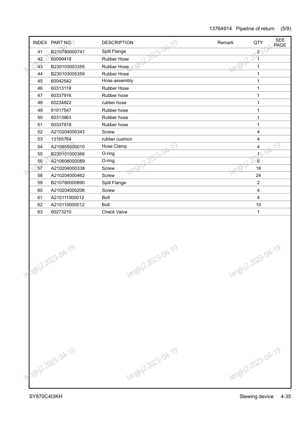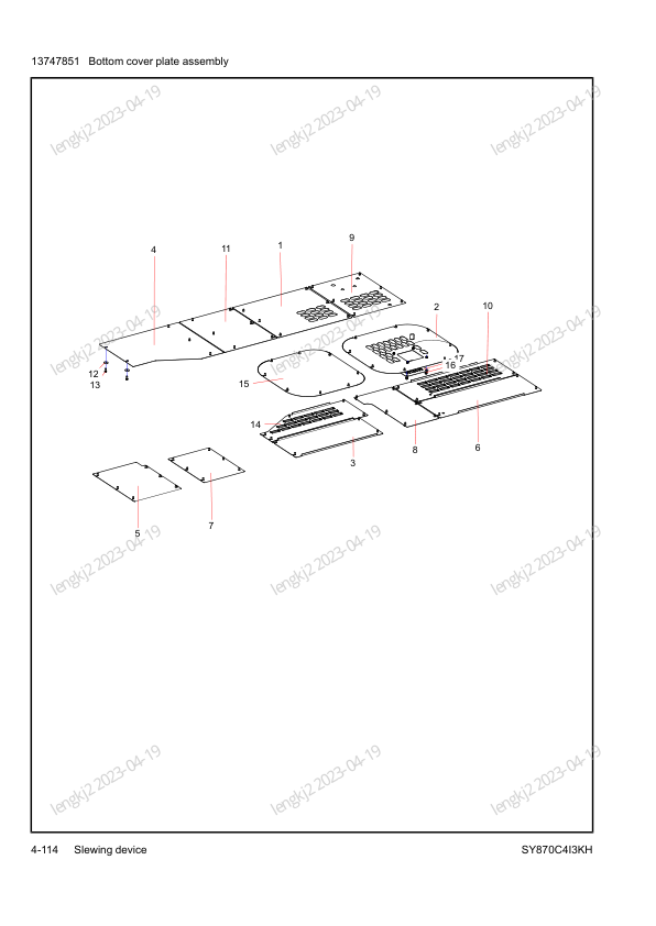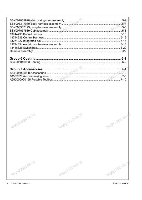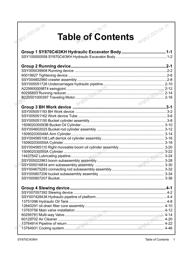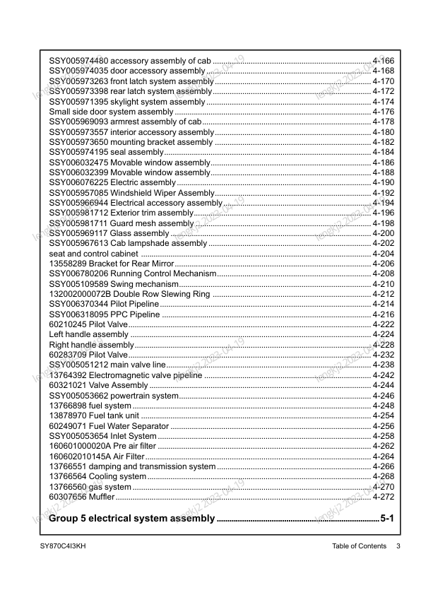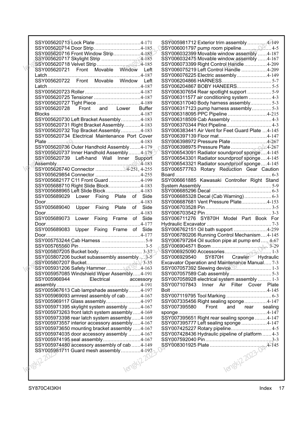 SANY SY870C413KH Hydraulic Excavator Parts Catalog