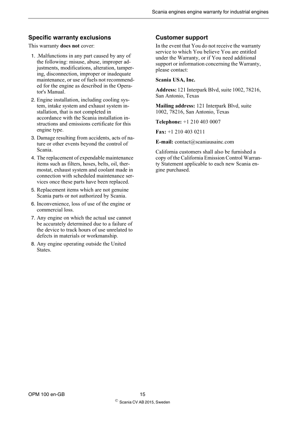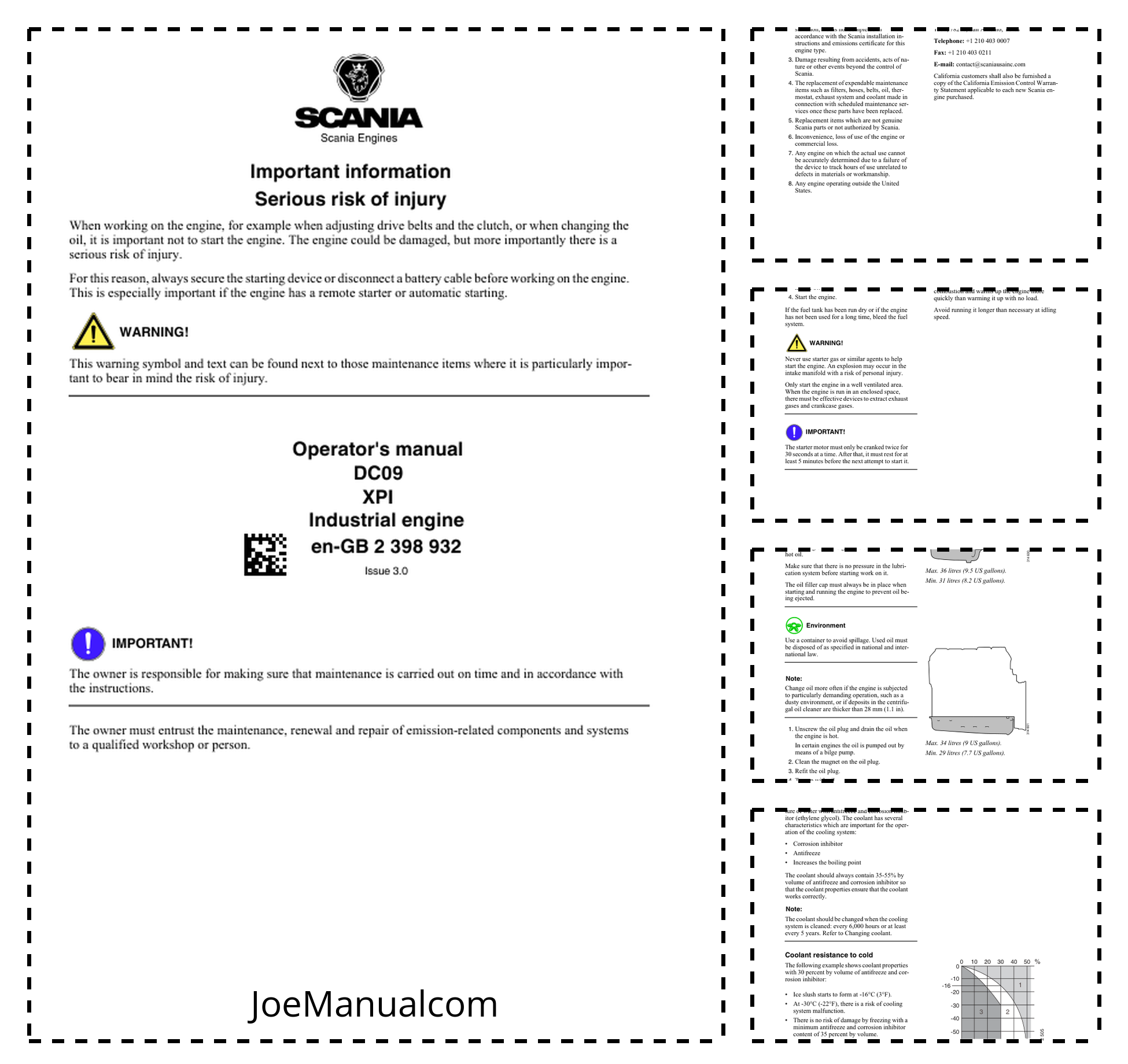 Scania DC09 XPI Industrial Engine Service and Operator Manual