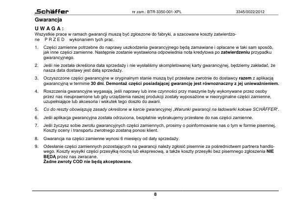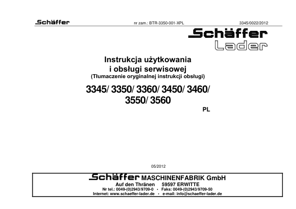 Schaffer 3345 3350 3360 3450 3460 3550 3560 Wheel Loaders Operators Manual PL