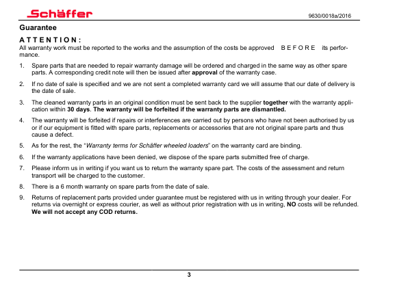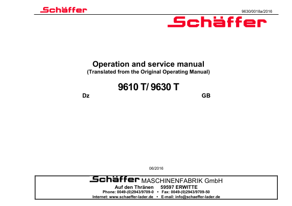 Schaffer 9610T 9630T Wheel Loader Operation and Service Manual