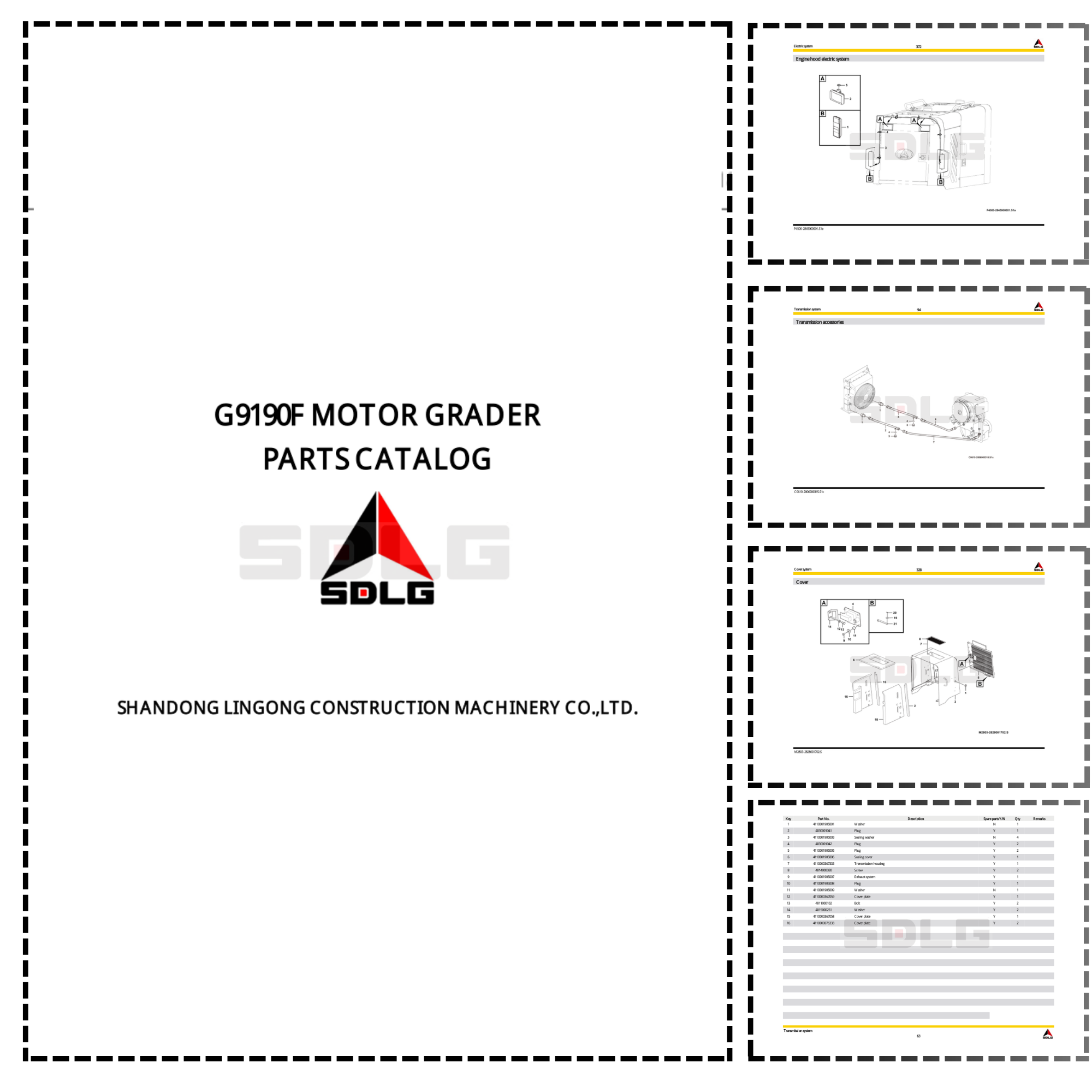 SDLG G9190F Motor Grader Parts Catalog