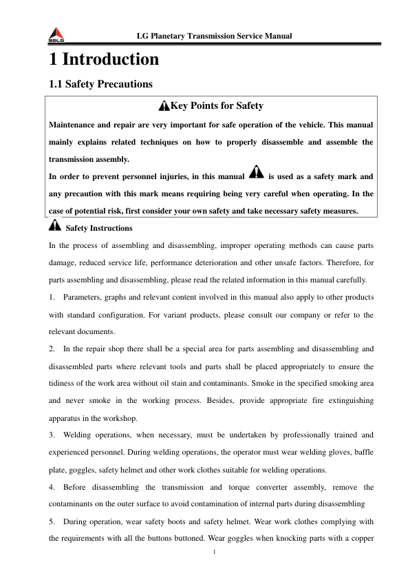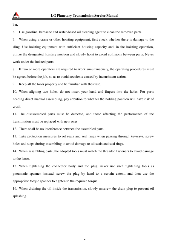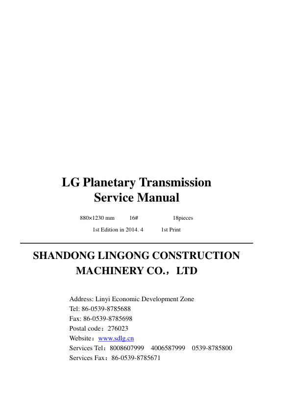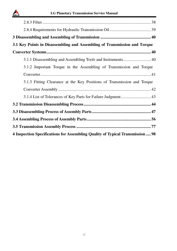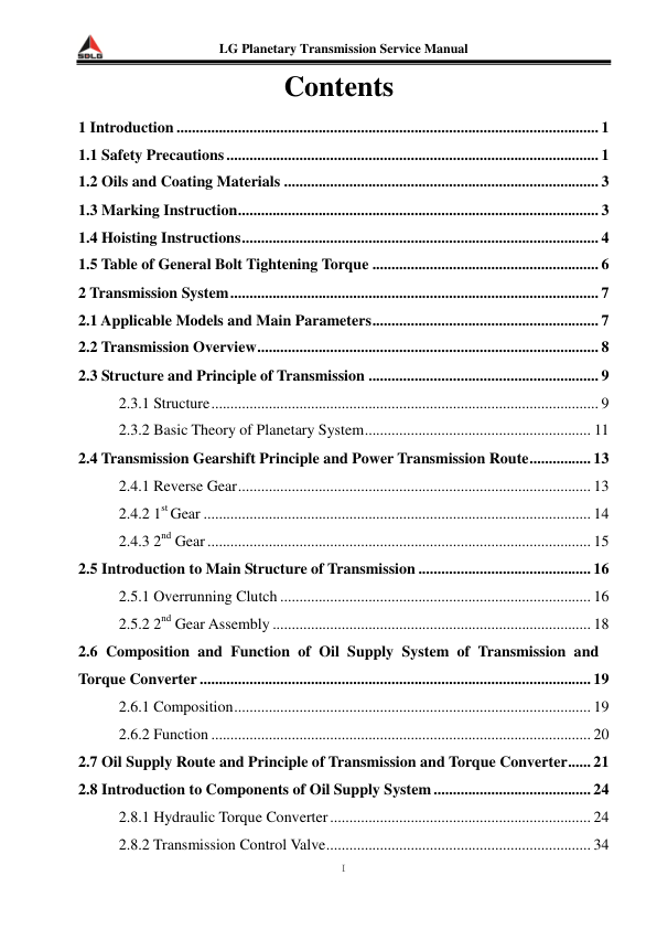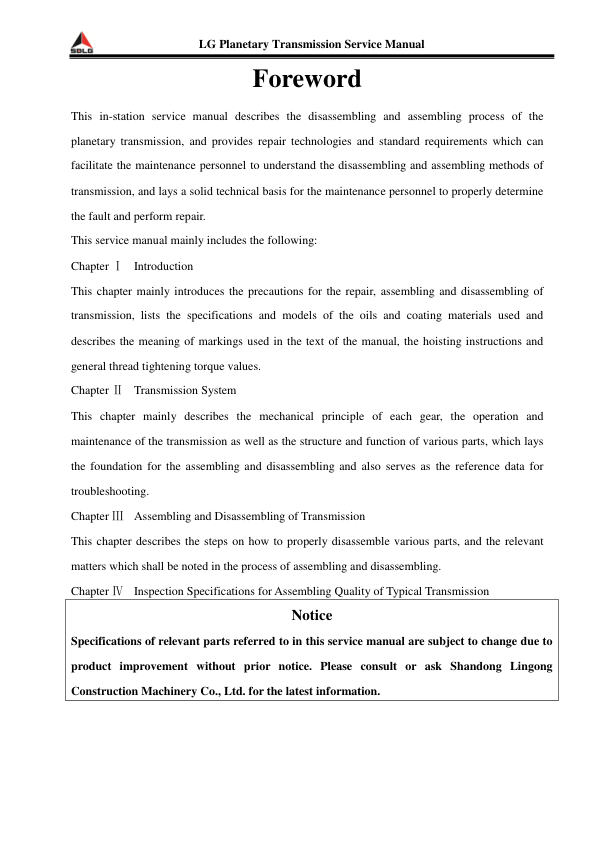 SDLG Planetary Transmission Service Manual