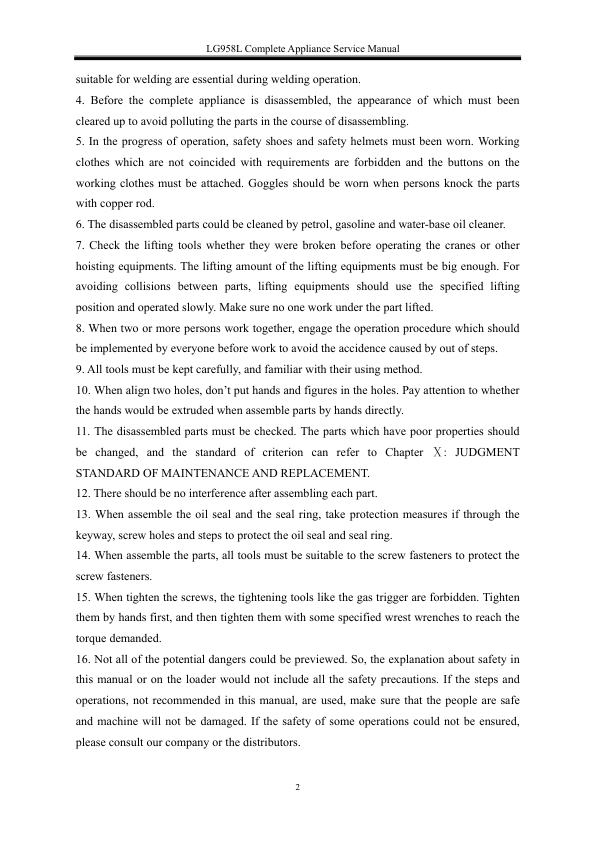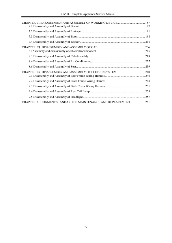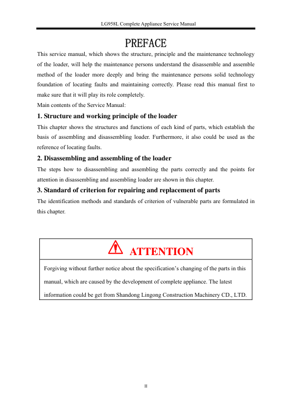 SDLG Wheel Loader LG958 Complete Appliance Service Manual