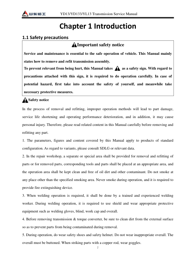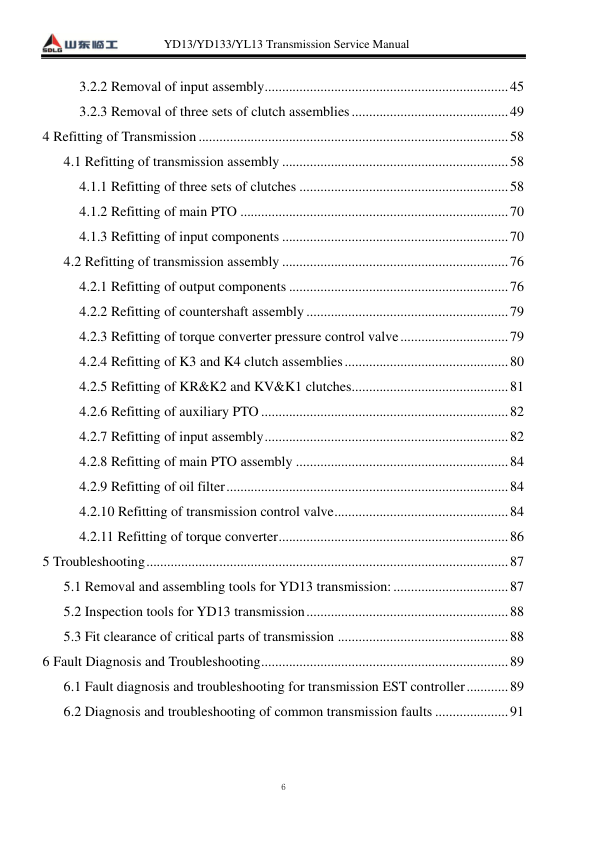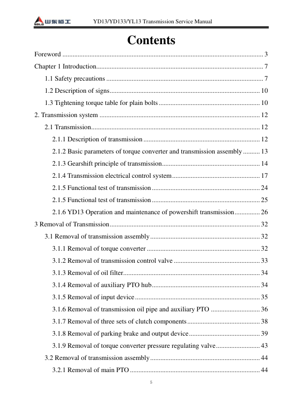 SDLG YD13 YD133 YL13 Transmission Service Manual