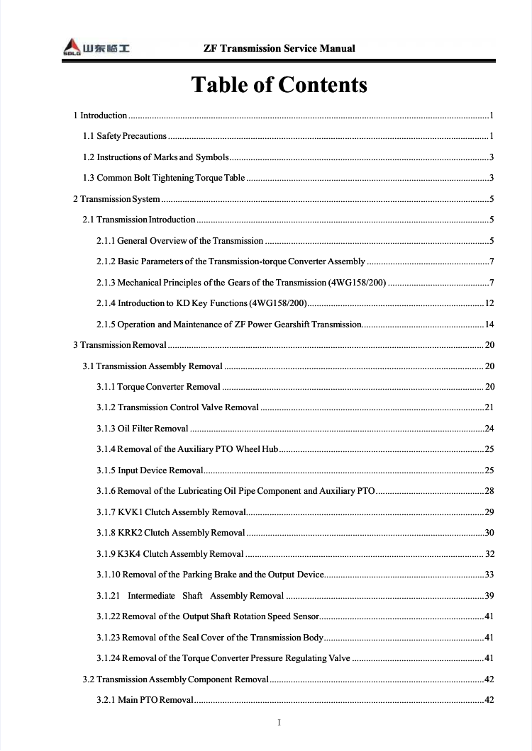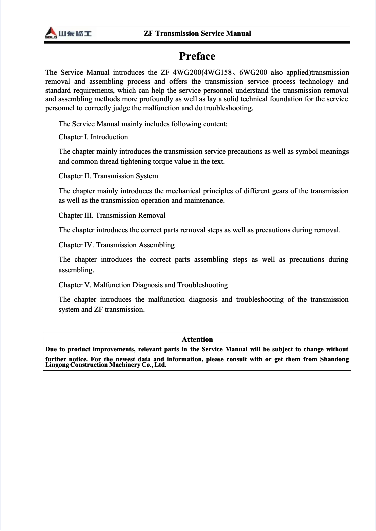 SDLG ZF 4WG158 4WG200 6WG200 Transmission Service Manual