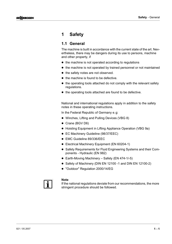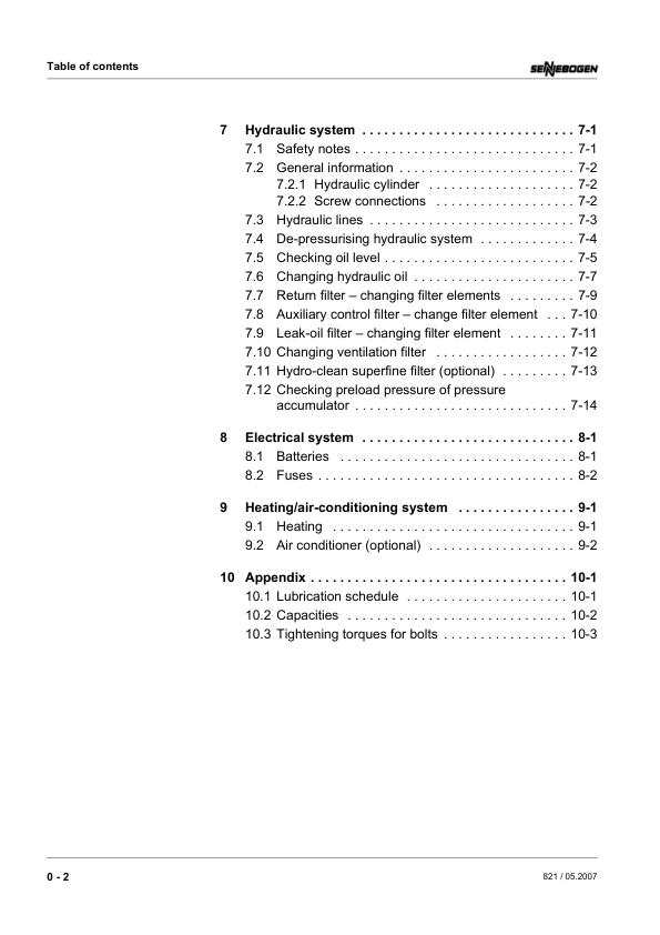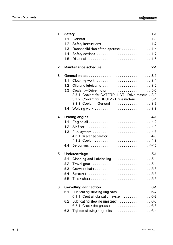 Sennebogen 821 Material Handler Operation and Maintenance Manual