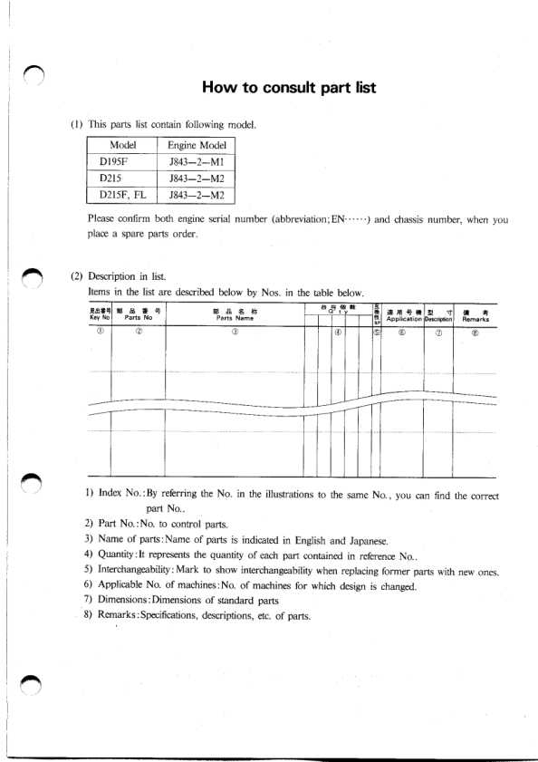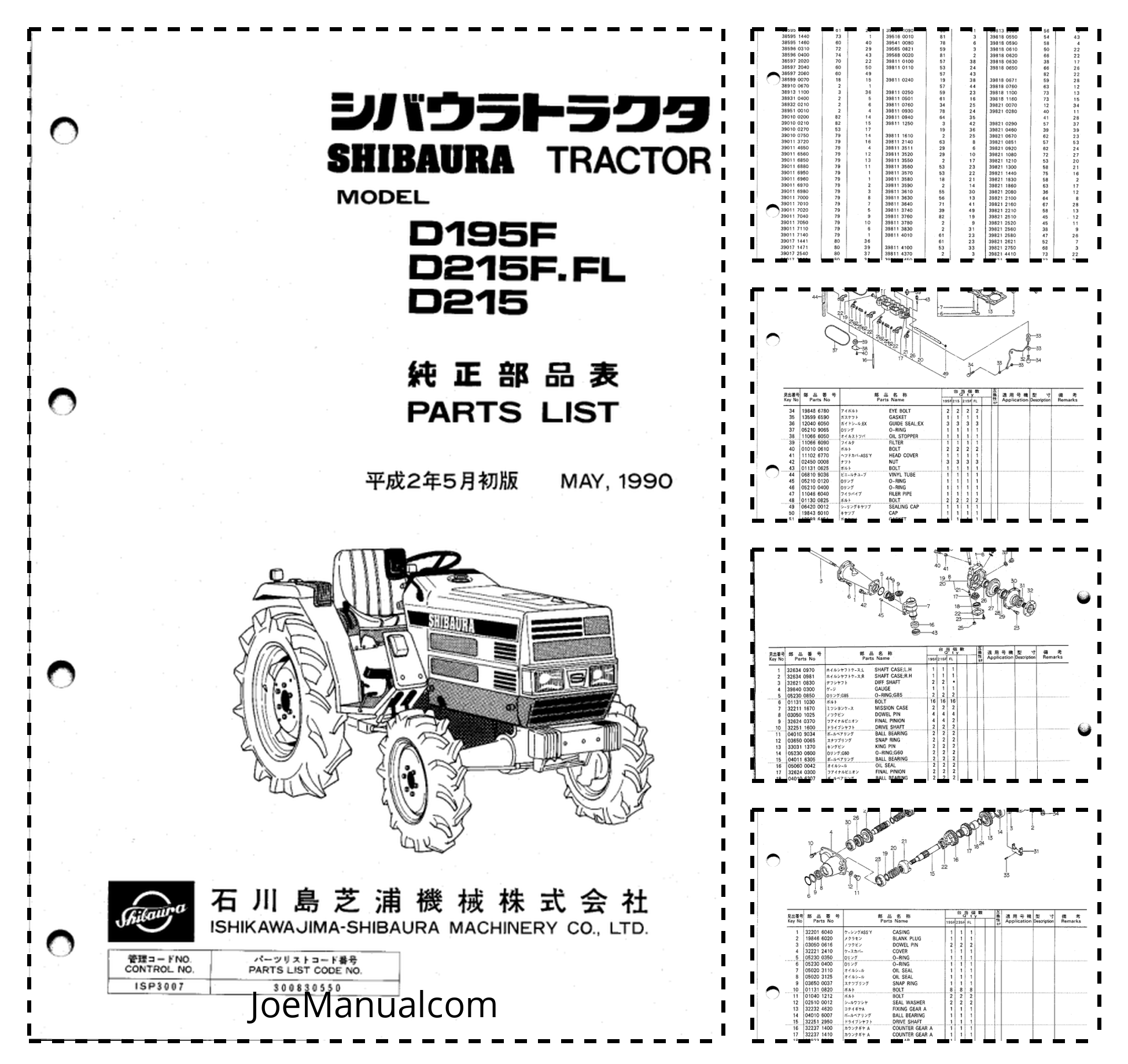Shibaura D195F D215F.FL D215 Tractor Parts List Catalog