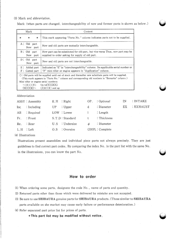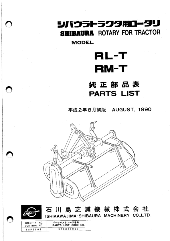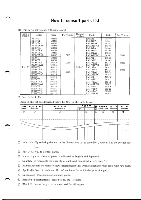 Shibaura RL-T RM-T Rotary Parts List Catalog