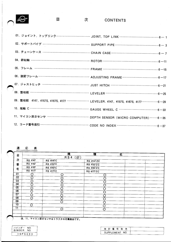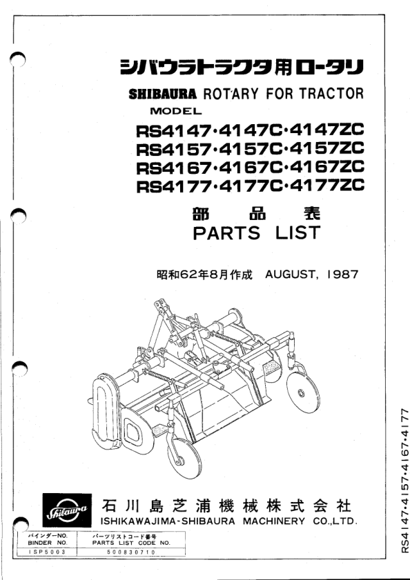 Shibaura RS41 Series Rotary Parts List Catalog