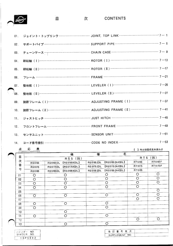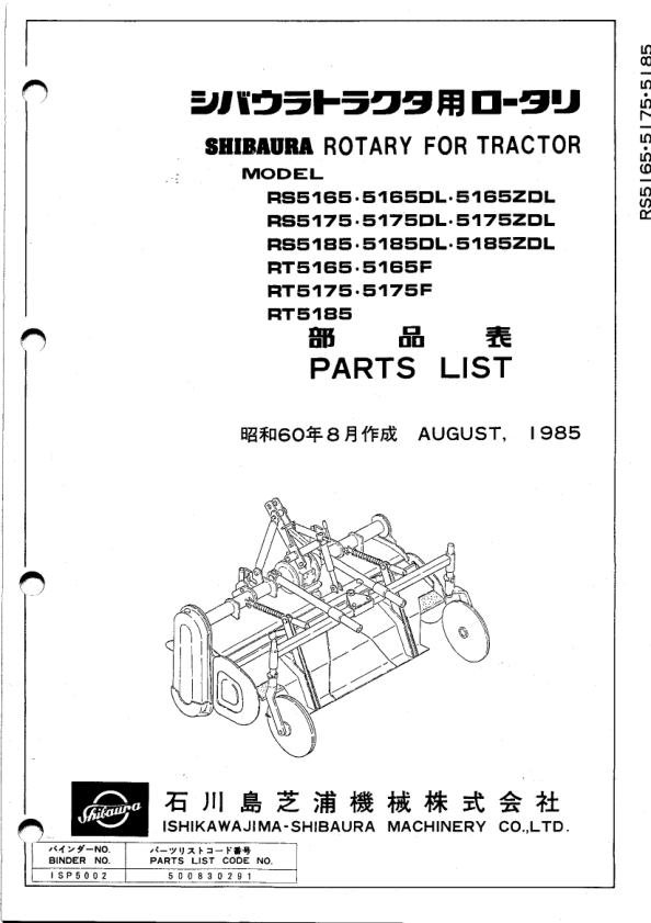 Shibaura RS51 Series Rotary Parts List Catalog