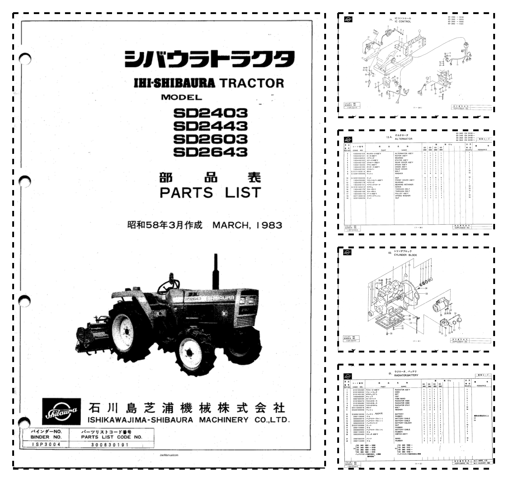 Shibaura SD2403 SD2443 SD2603 SD2643 Tractors Parts List Catalog