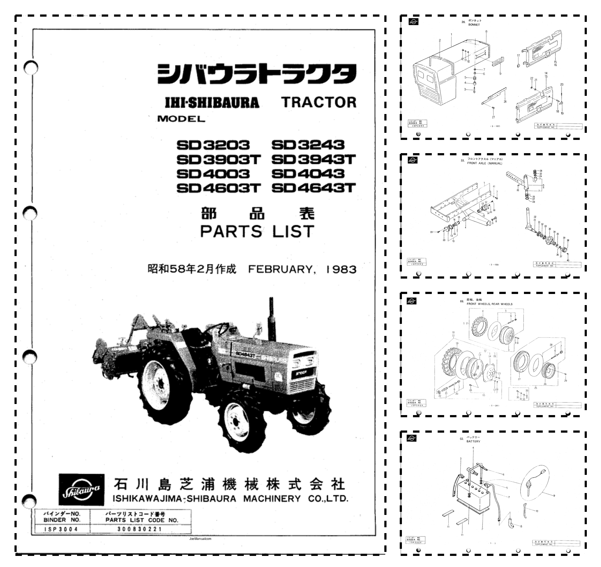 Shibaura SD3203 SD3903T SD4003 SD4603T Tractors Parts List Catalog