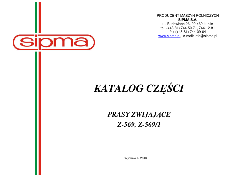 Sipma Z 569 Z 569 1 Baler Parts Catalog PL