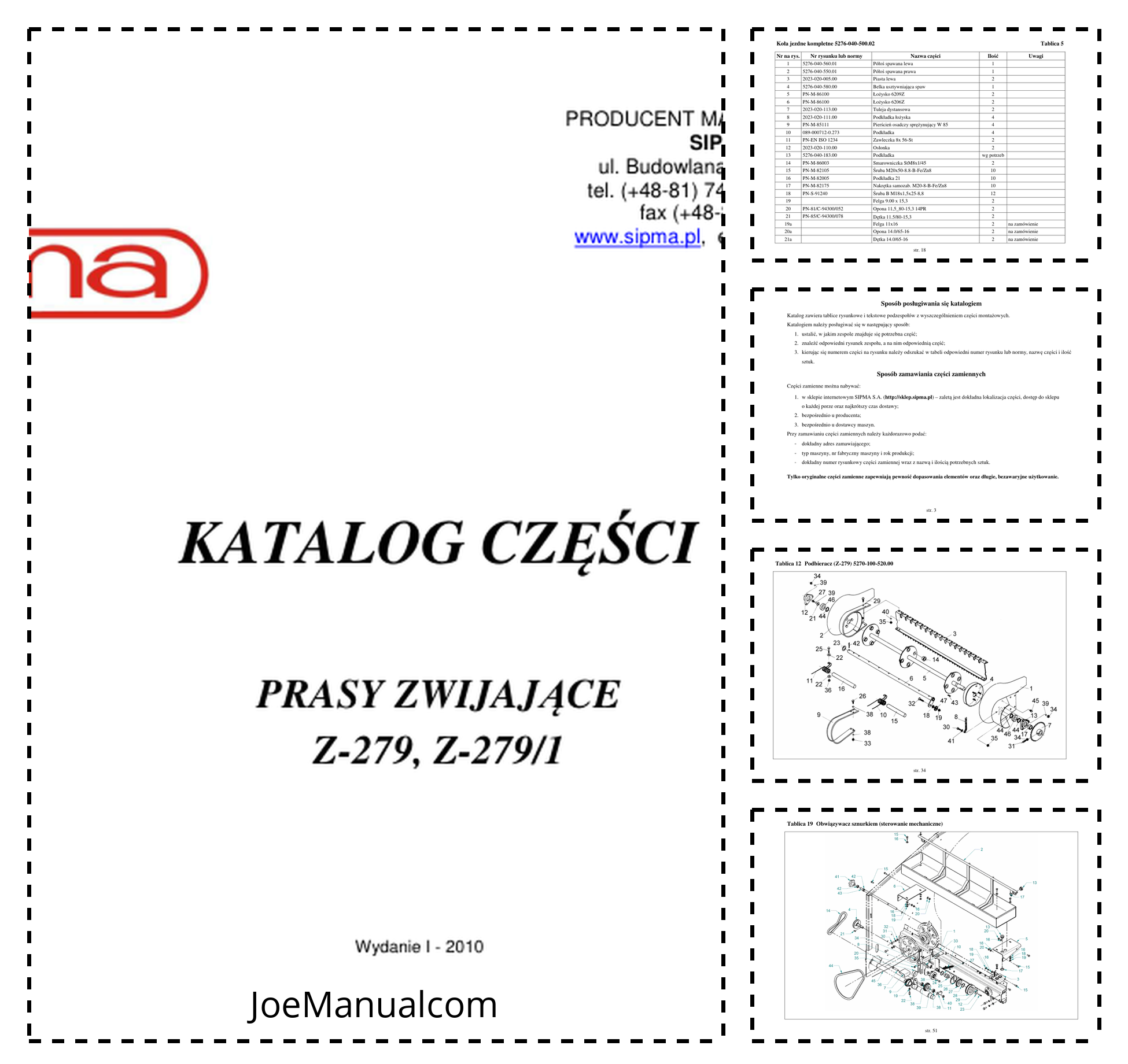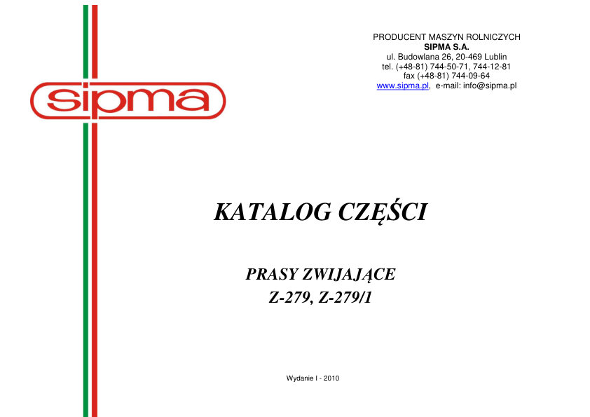 Sipma Z279 Z279 1 Round Baler Parts Catalog PL