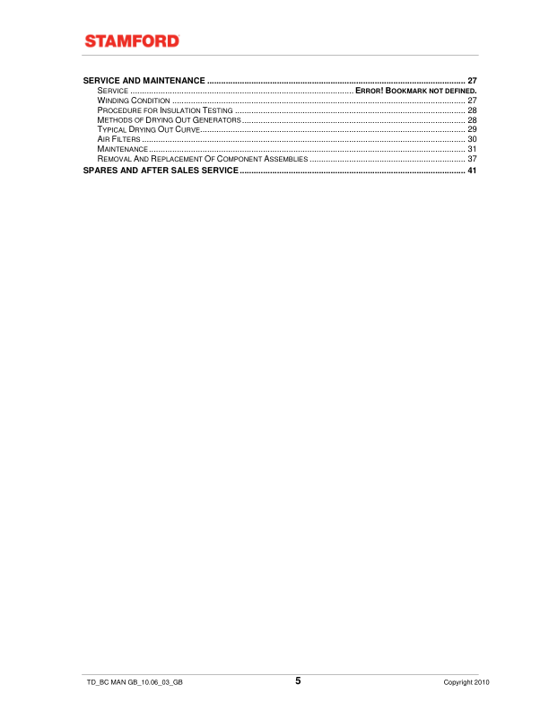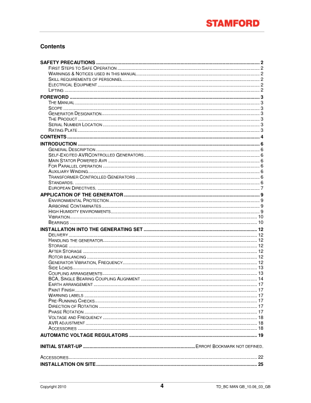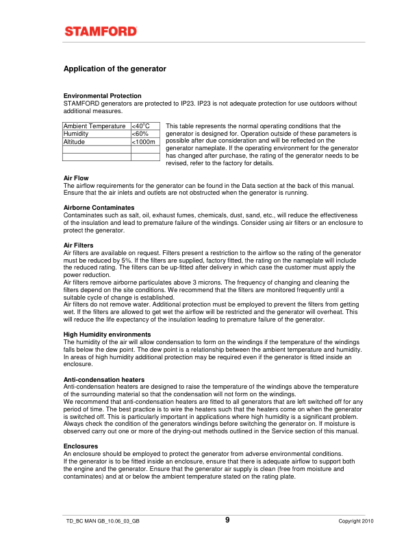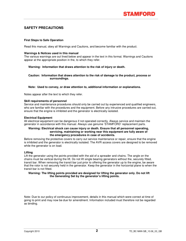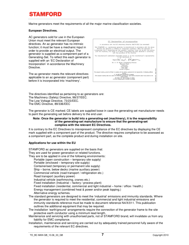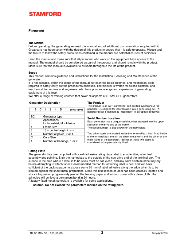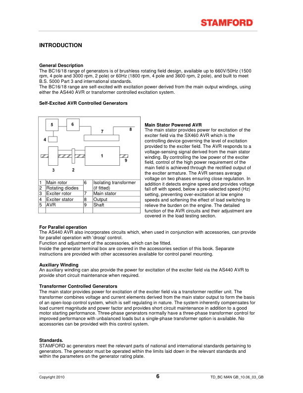 Stamford BC Generators Installation Service Maintenance Manual 9806/4650