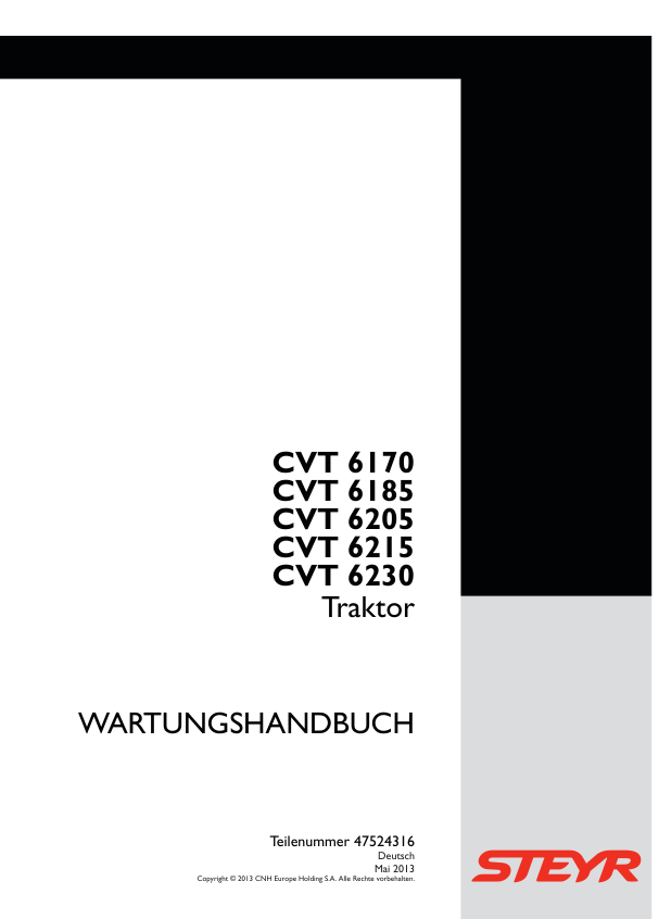 Steyr CVT 6170 6185 6205 6215 6230 Tractor Maintenance Manual