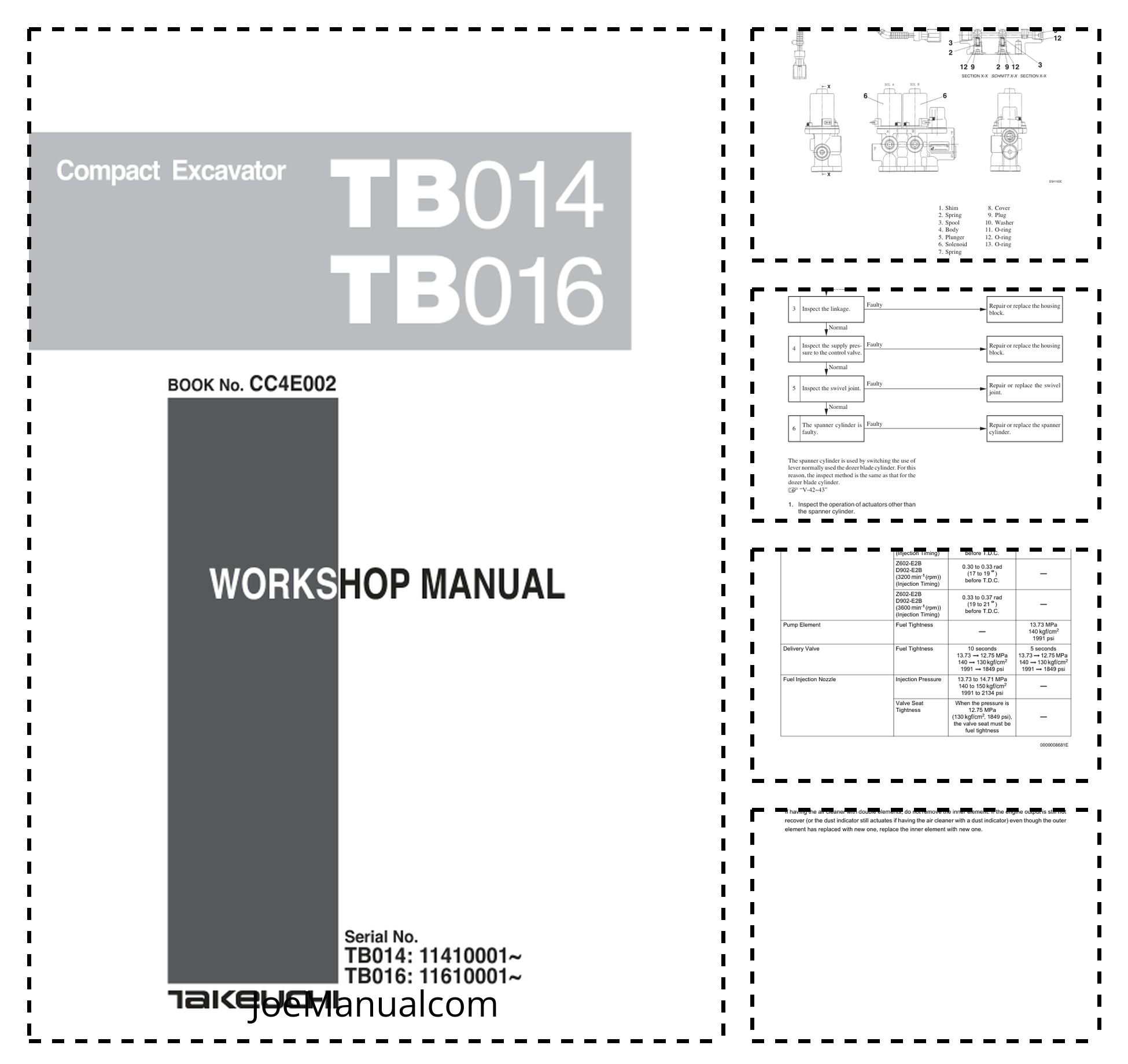 Takeuchi TB014 TB016 Excavator Workshop Manual