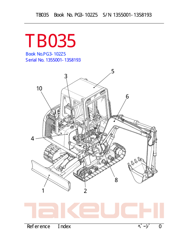 Takeuchi TB035 Compact Excavator Parts Manual