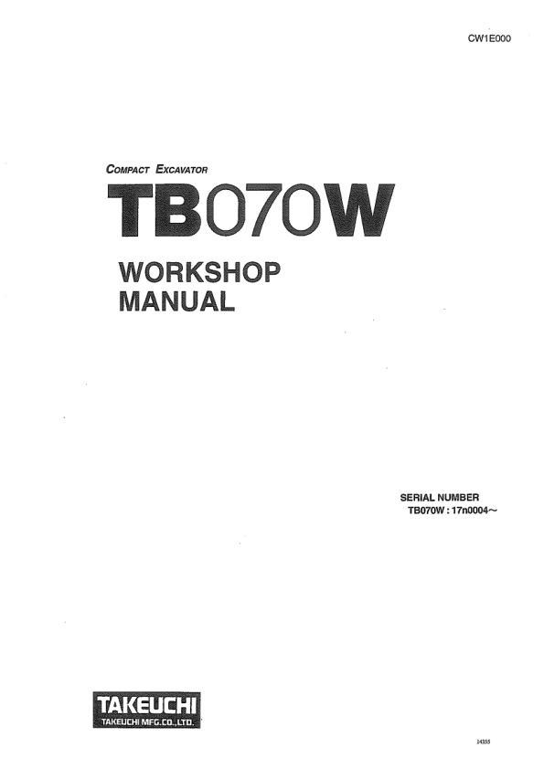 Takeuchi TB070W Compact Excavator Workshop Manual