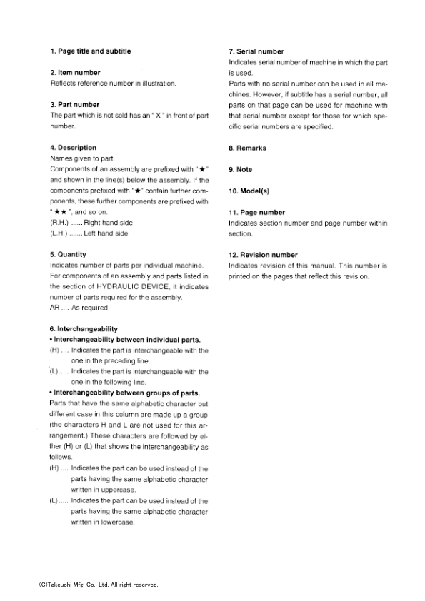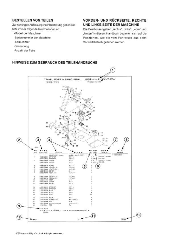 Takeuchi TB1140 Excavator Parts Catalog
