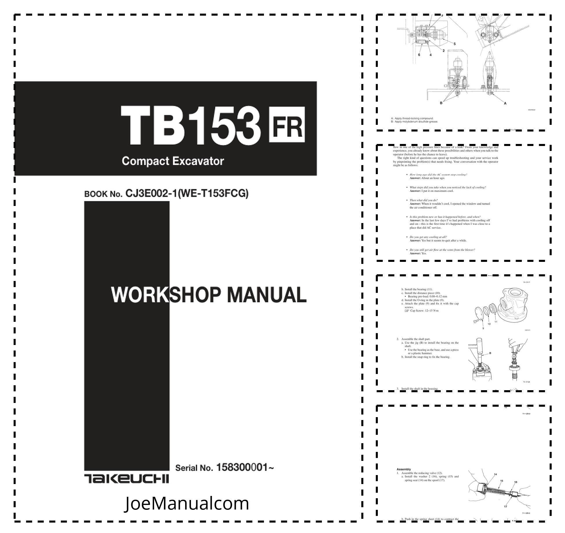 Takeuchi TB153 FR Compact Excavator Workshop Manual SN from 158300