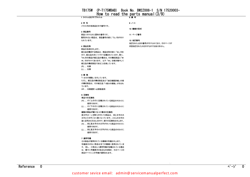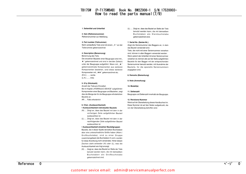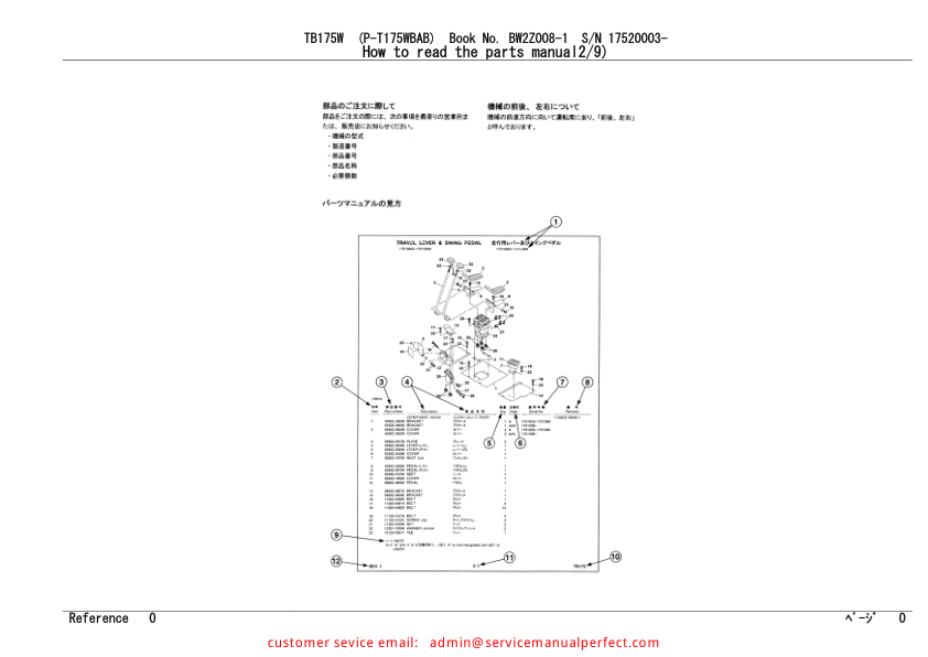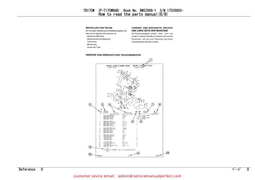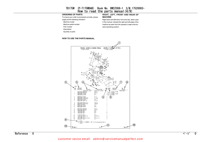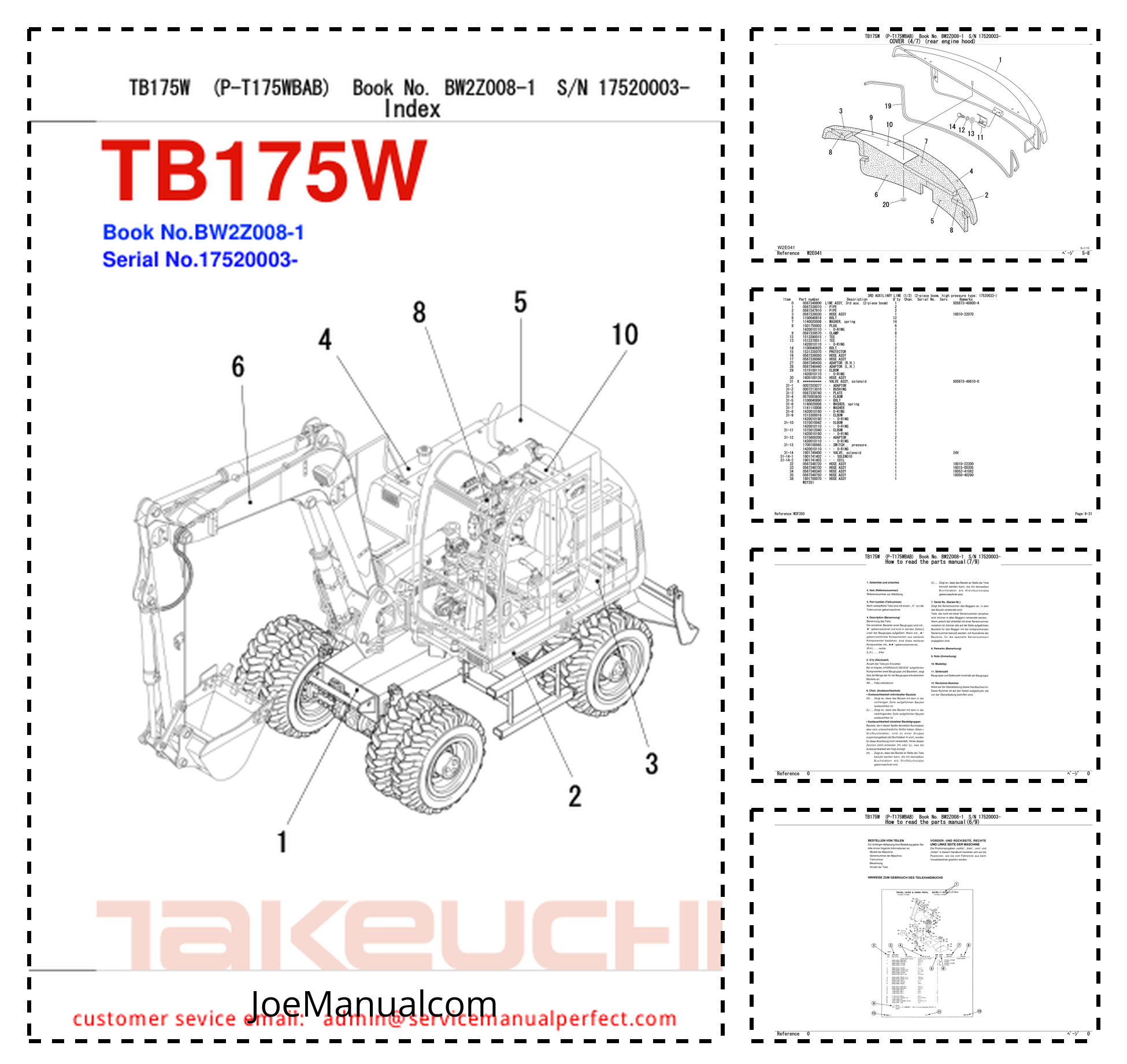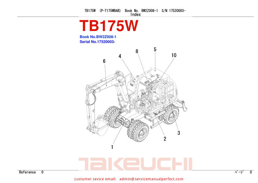 Takeuchi TB175W Wheeled Excavator Parts Manual